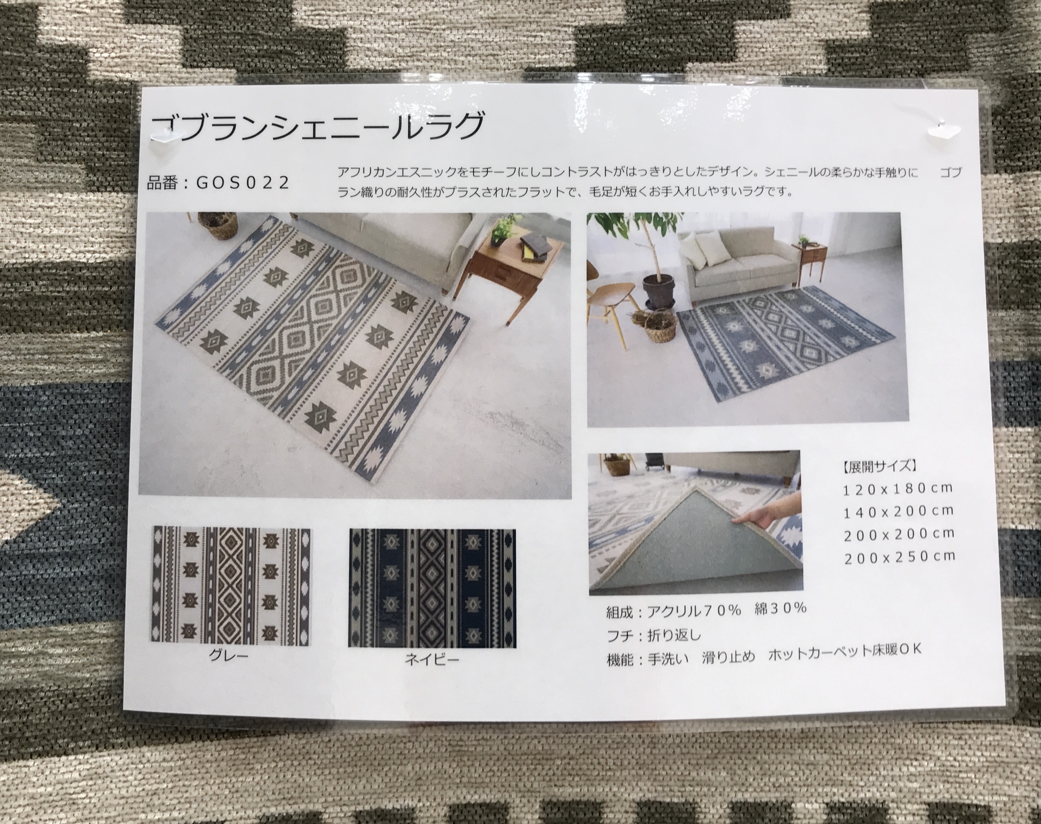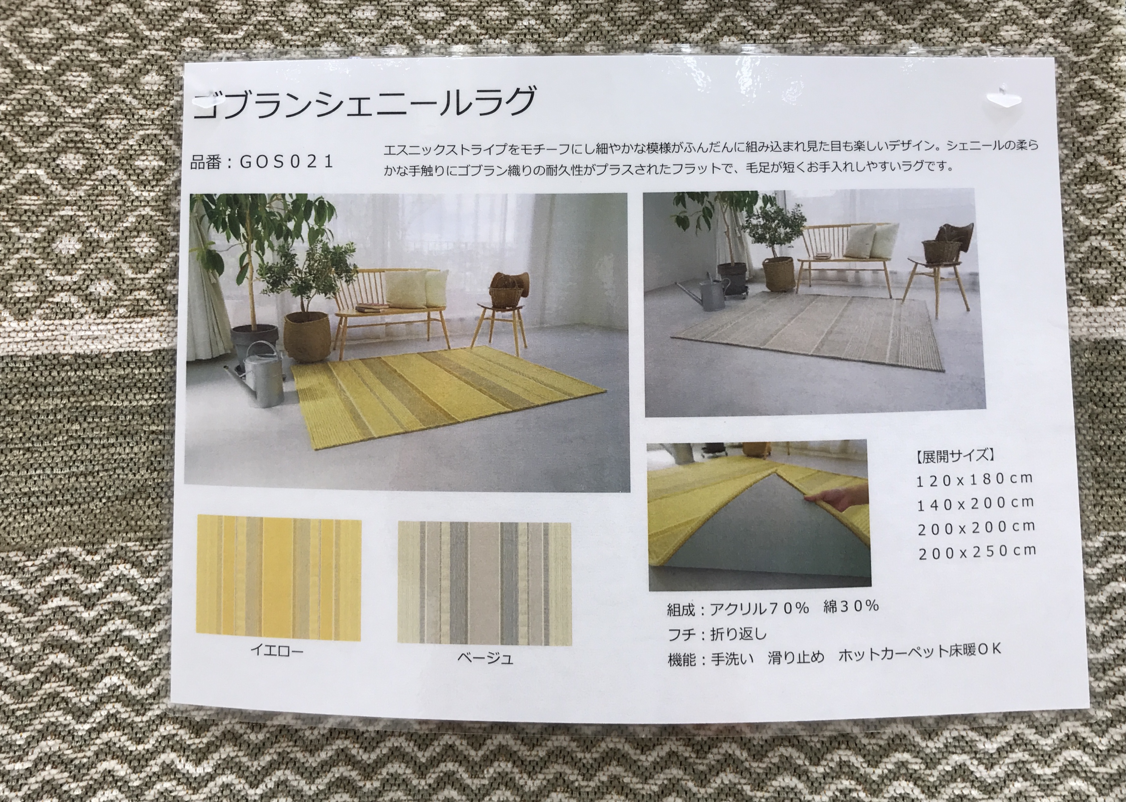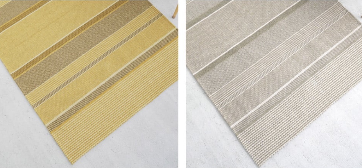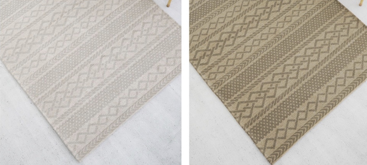 毛羽のある糸が毛虫のように見えることから名づけられた糸をゴブラン織りにして軽くて扱いやすいラグです。