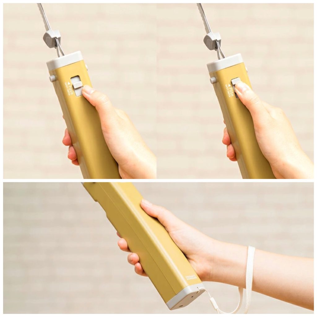 誤作動防止スイッチと落下防止ストラップで安全対策