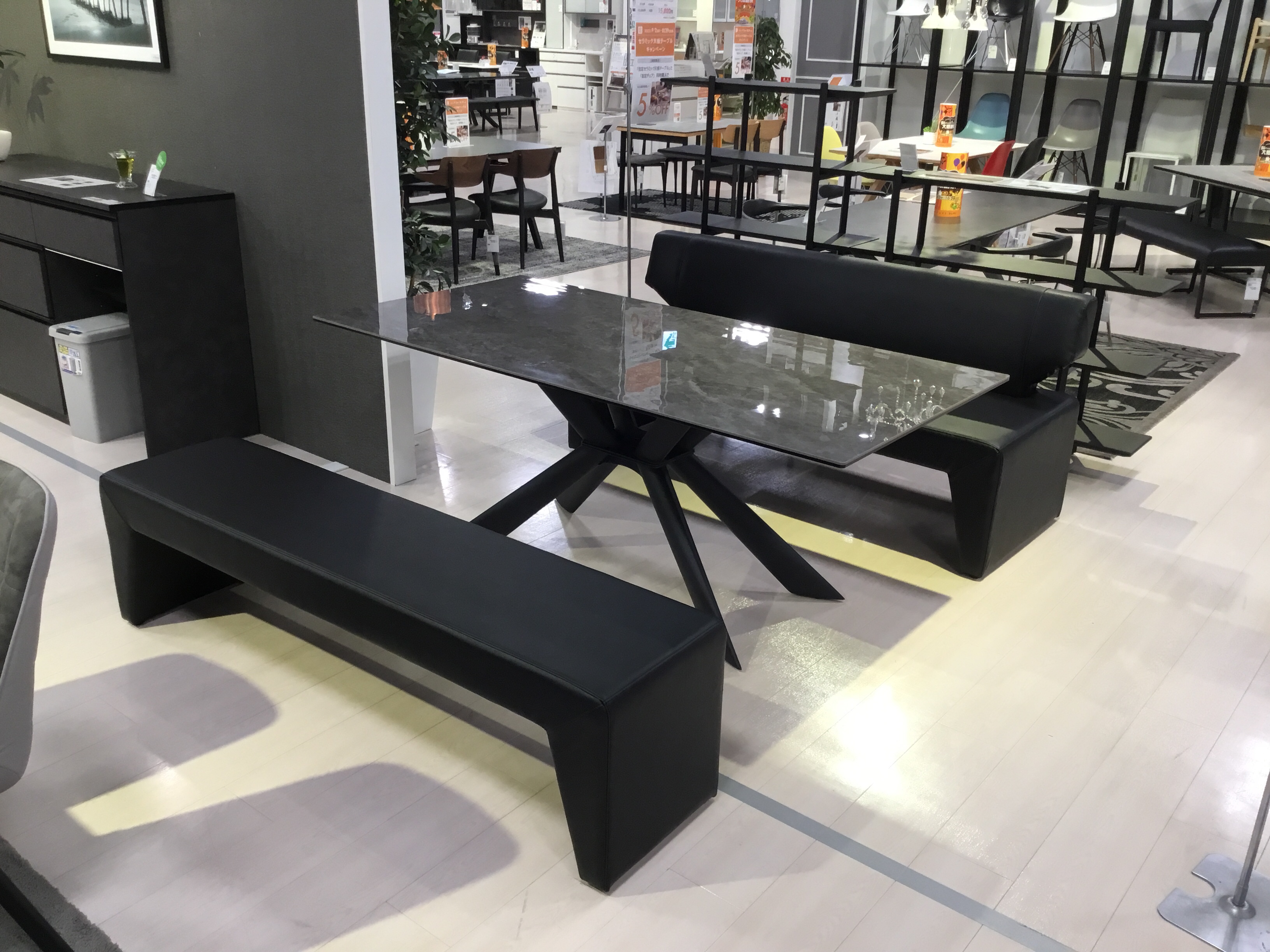 セラミック天板を使ったかっこいいダイニングソファセット!