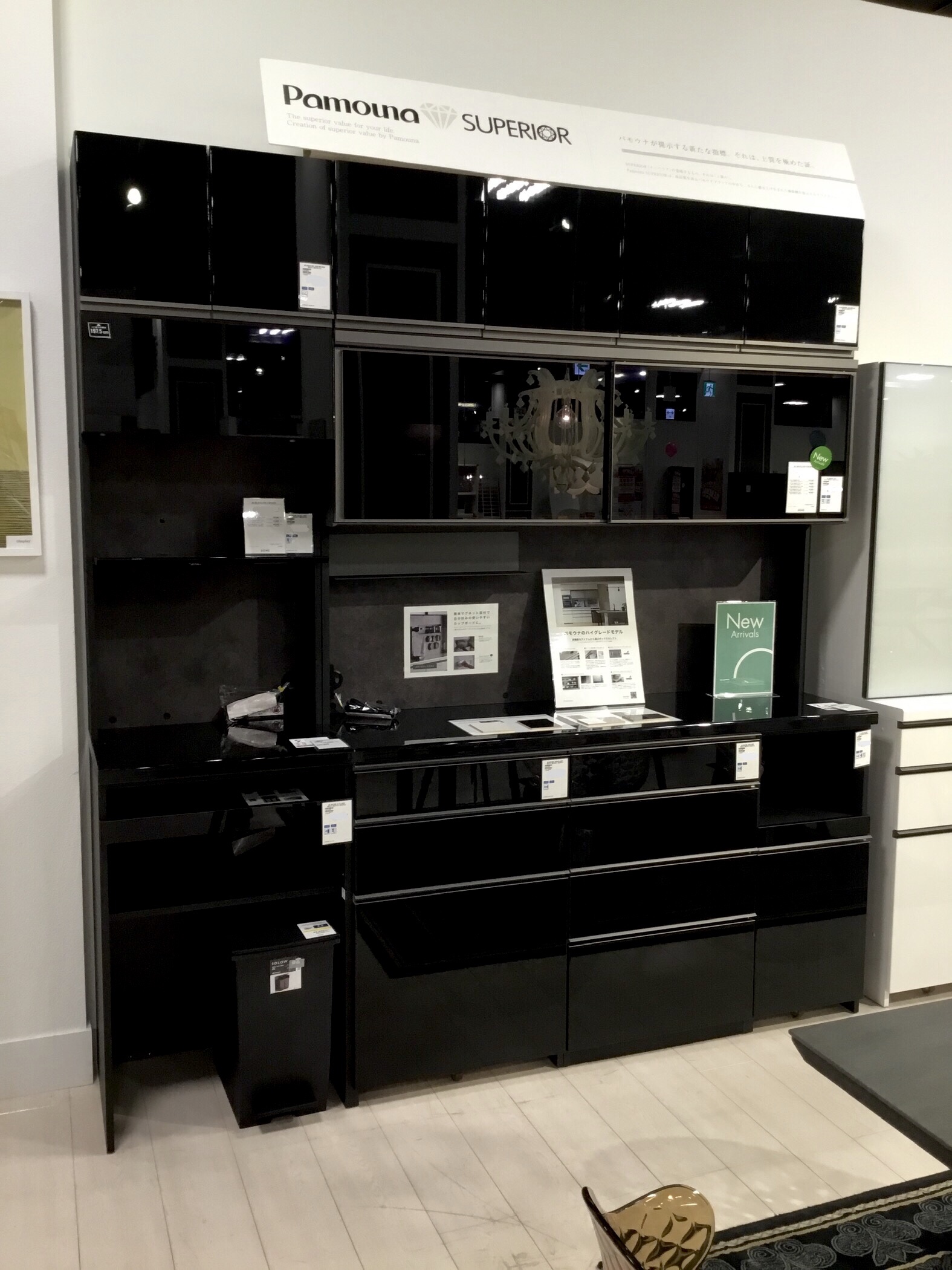 パモウナの新作食器棚『ASシリーズ』がダイニング売場に並びました。