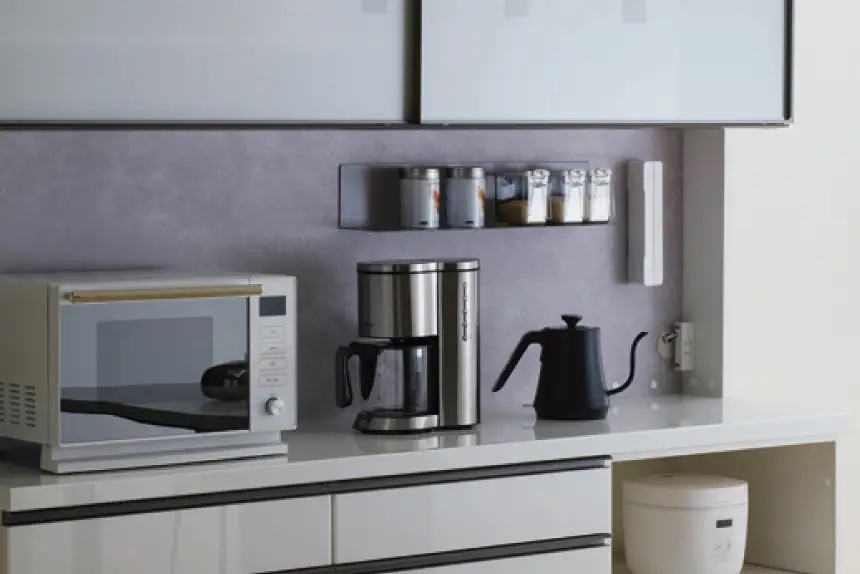 こうすることで、コンセントボックスが側面にくるレイアウトでも壁まで食器棚をつけることができます。
