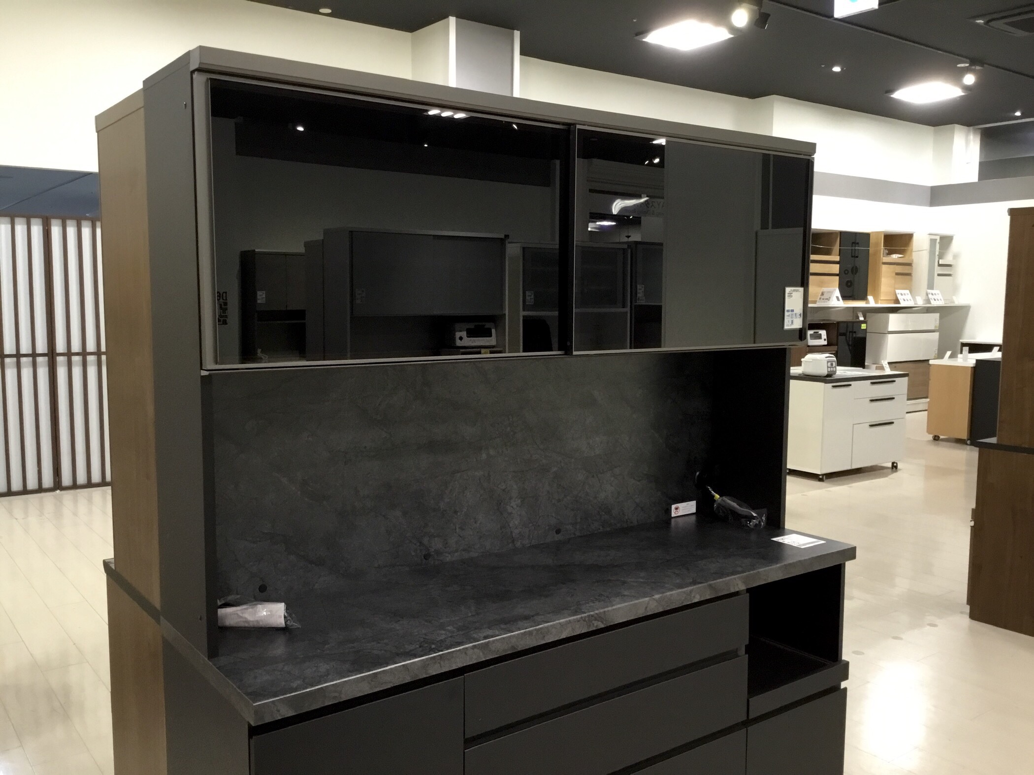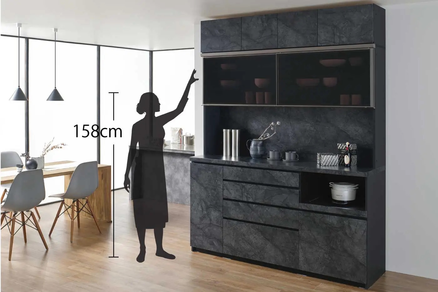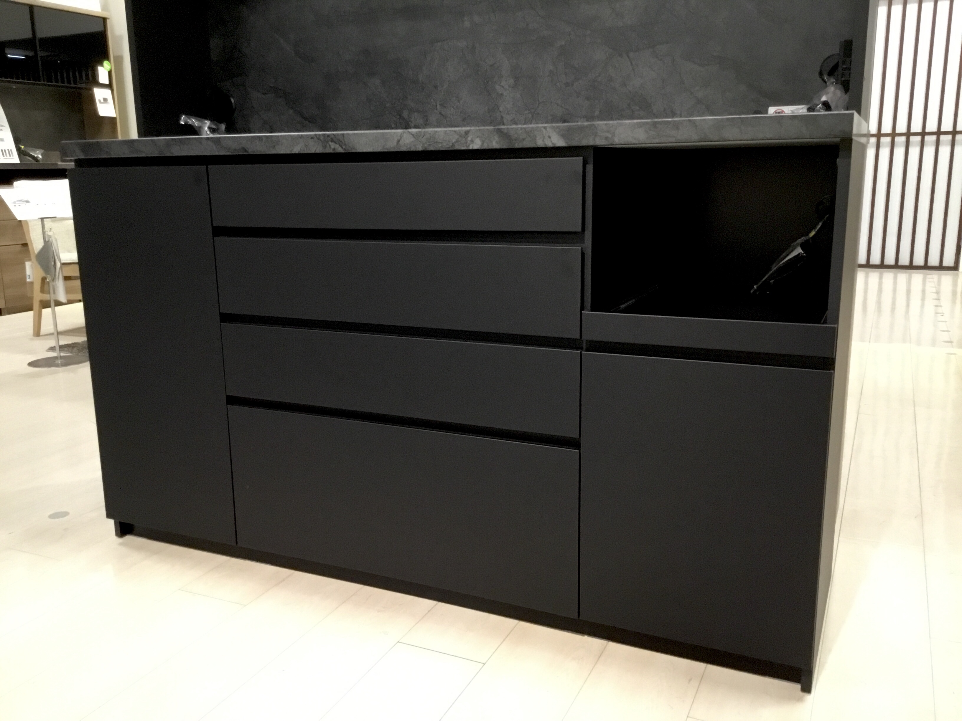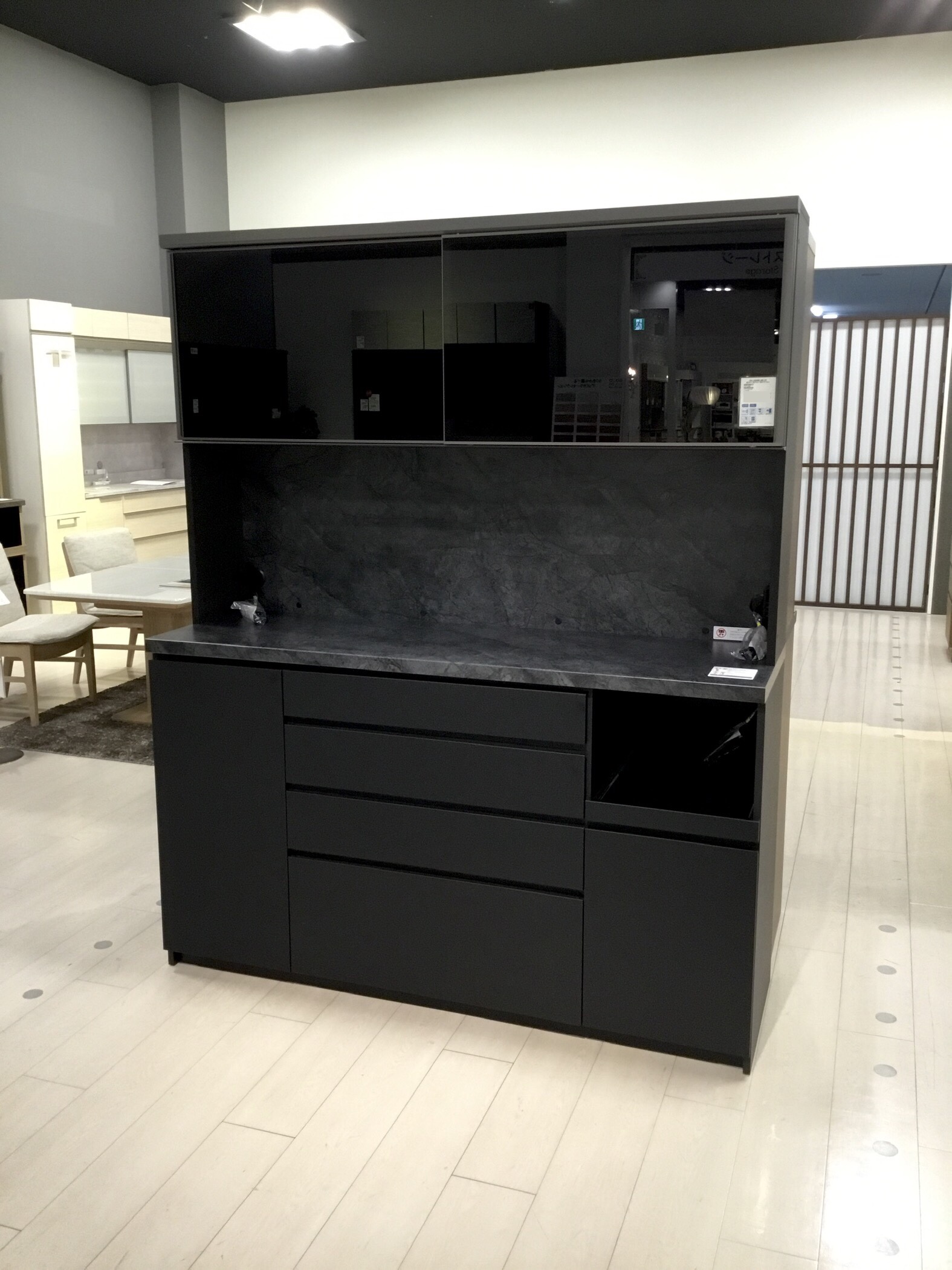 特にブラックは他の光沢のある食器棚よりも重厚感を感じさせます。