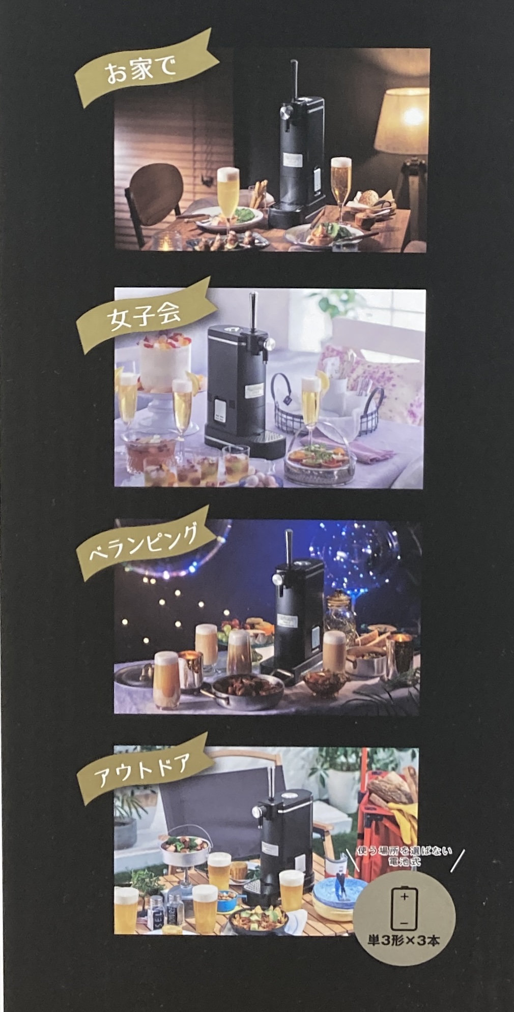 乾電池(アルカリ単三 3本)で使用できるので室内外で活躍!
