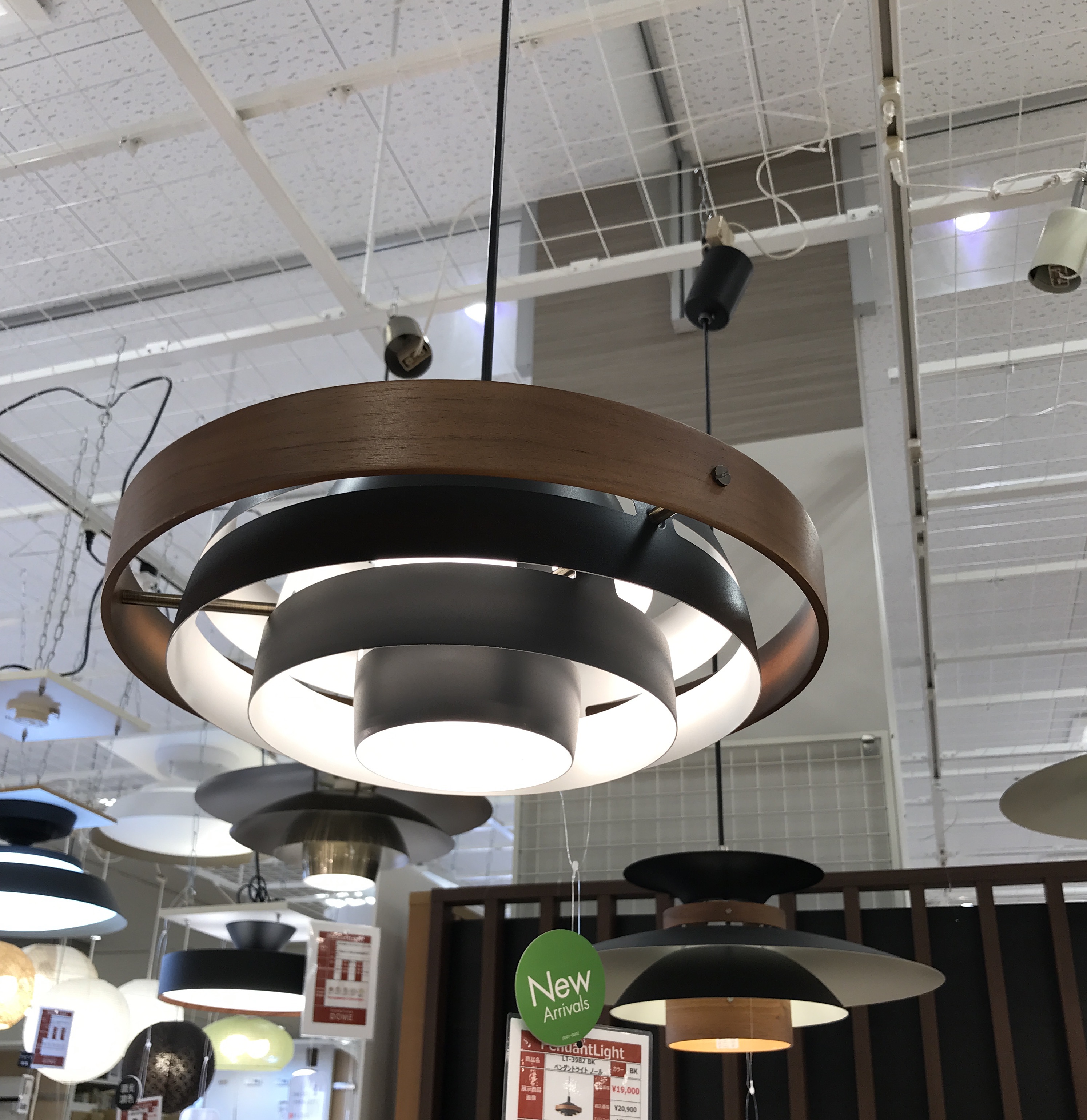スチールとウッドの組み合わせが調和したペンダントライト