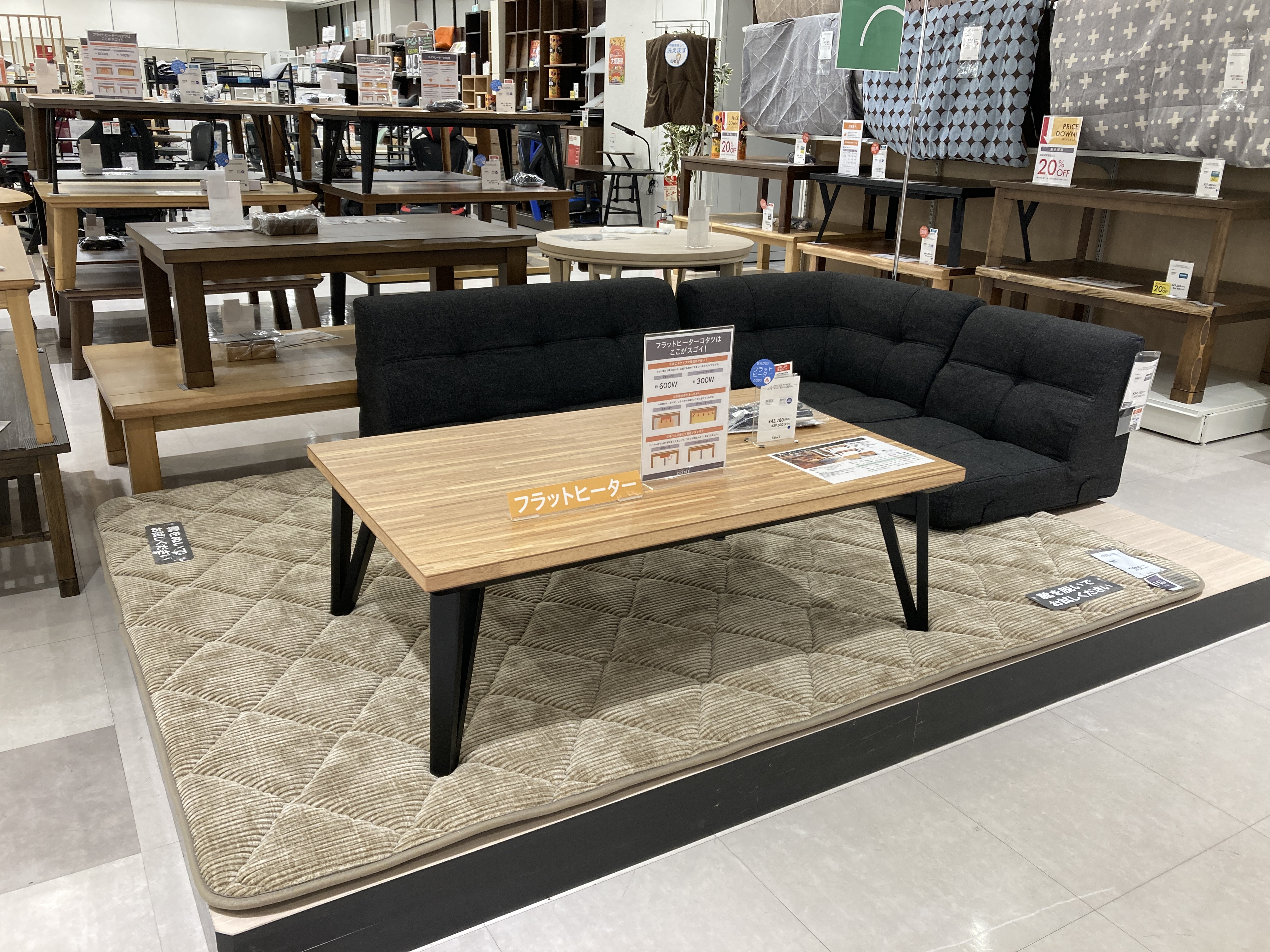 店頭にてこたつ内部の広さをご覧ください。