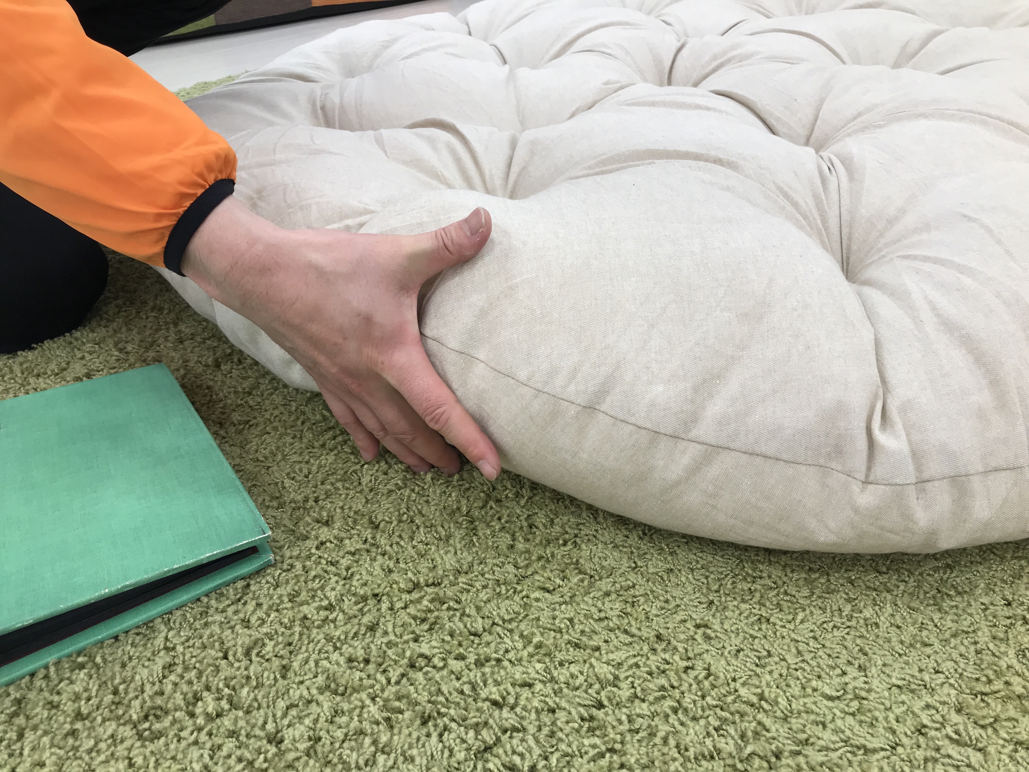 大型サイズなので大人が座ってもこんなにもひろーいクッション