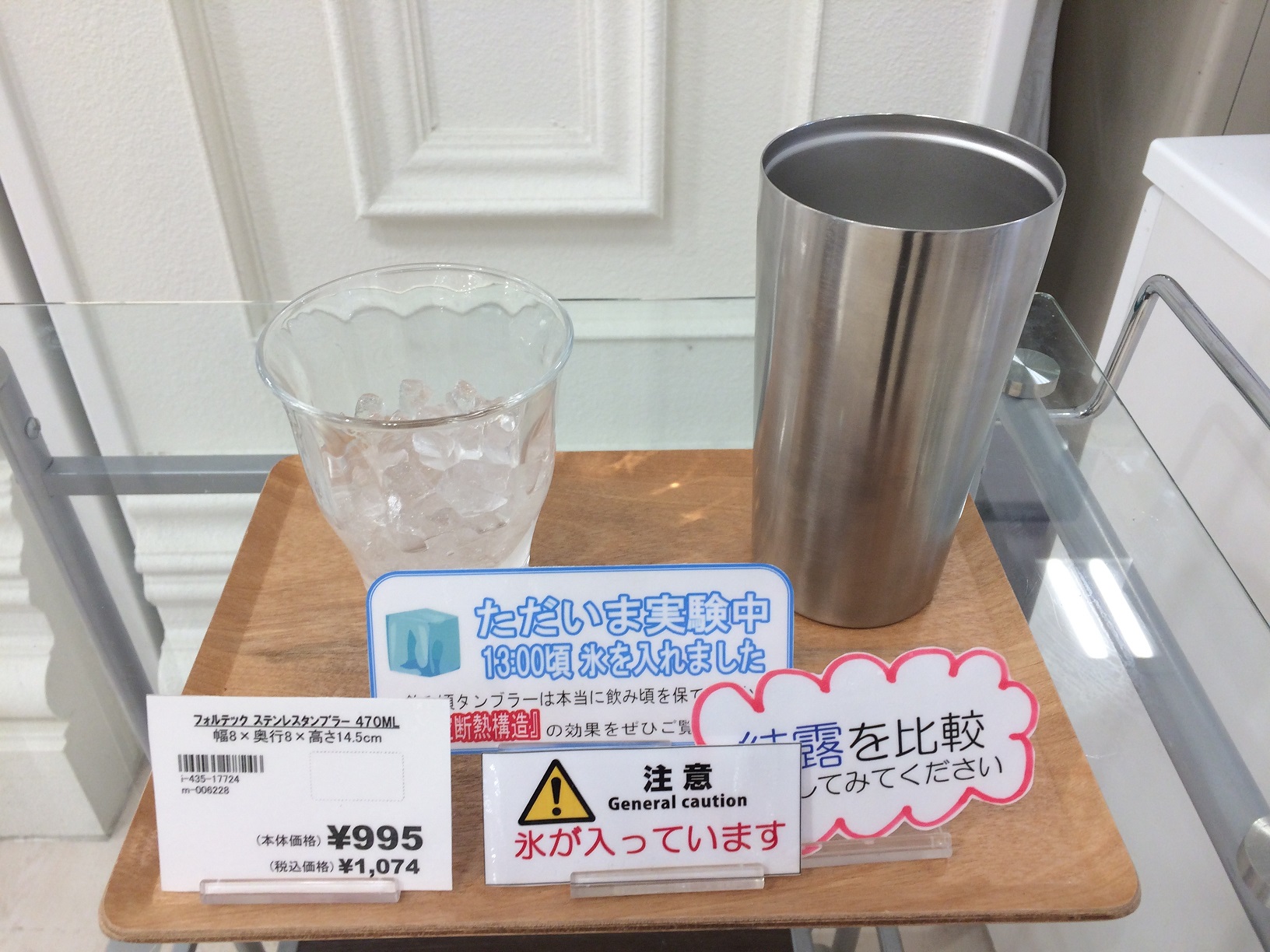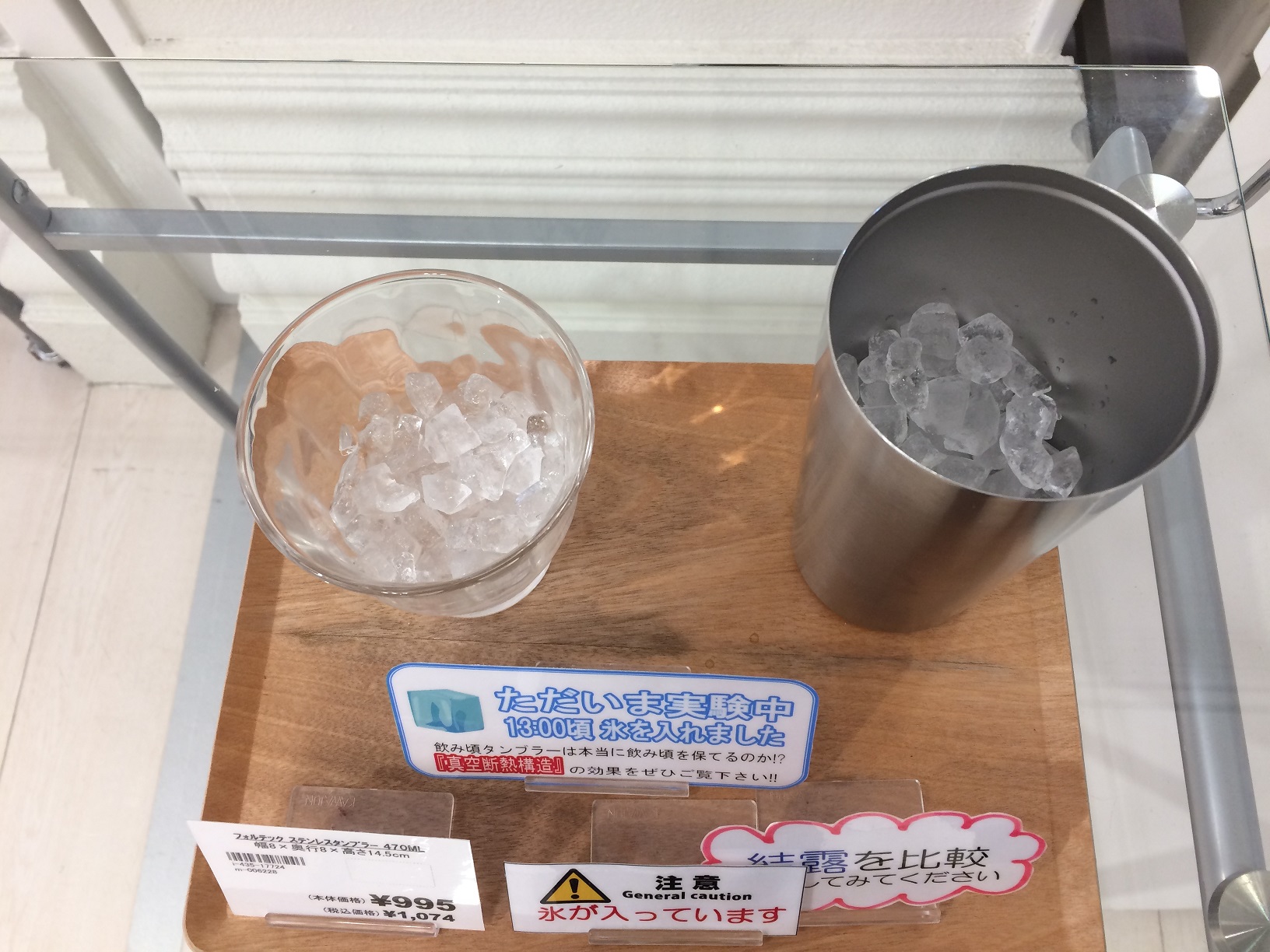 どれだけ氷の持ち時間が長いか!を店頭で実演しています。
