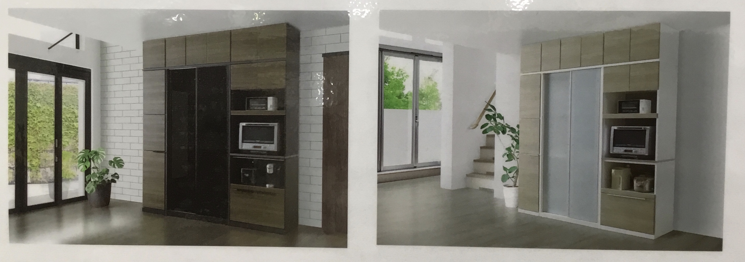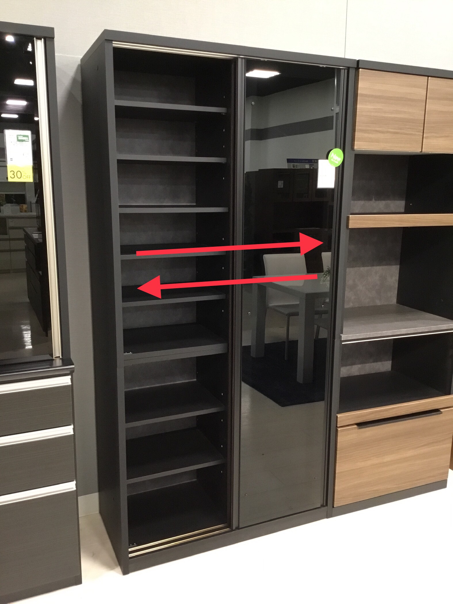 引戸タイプのダイニングボードは幅90cmから140cmまで10cm刻みでサイズが選べます。