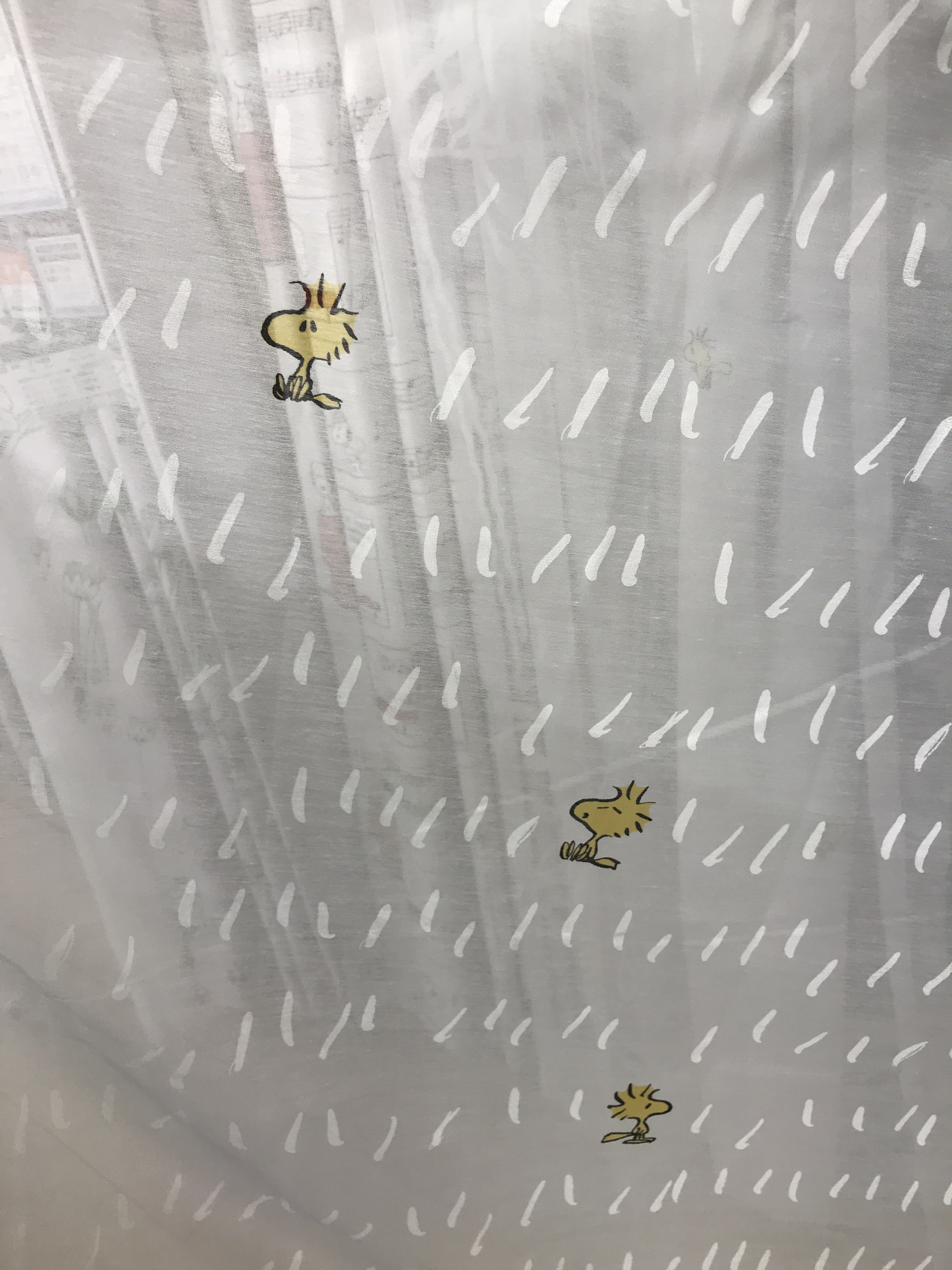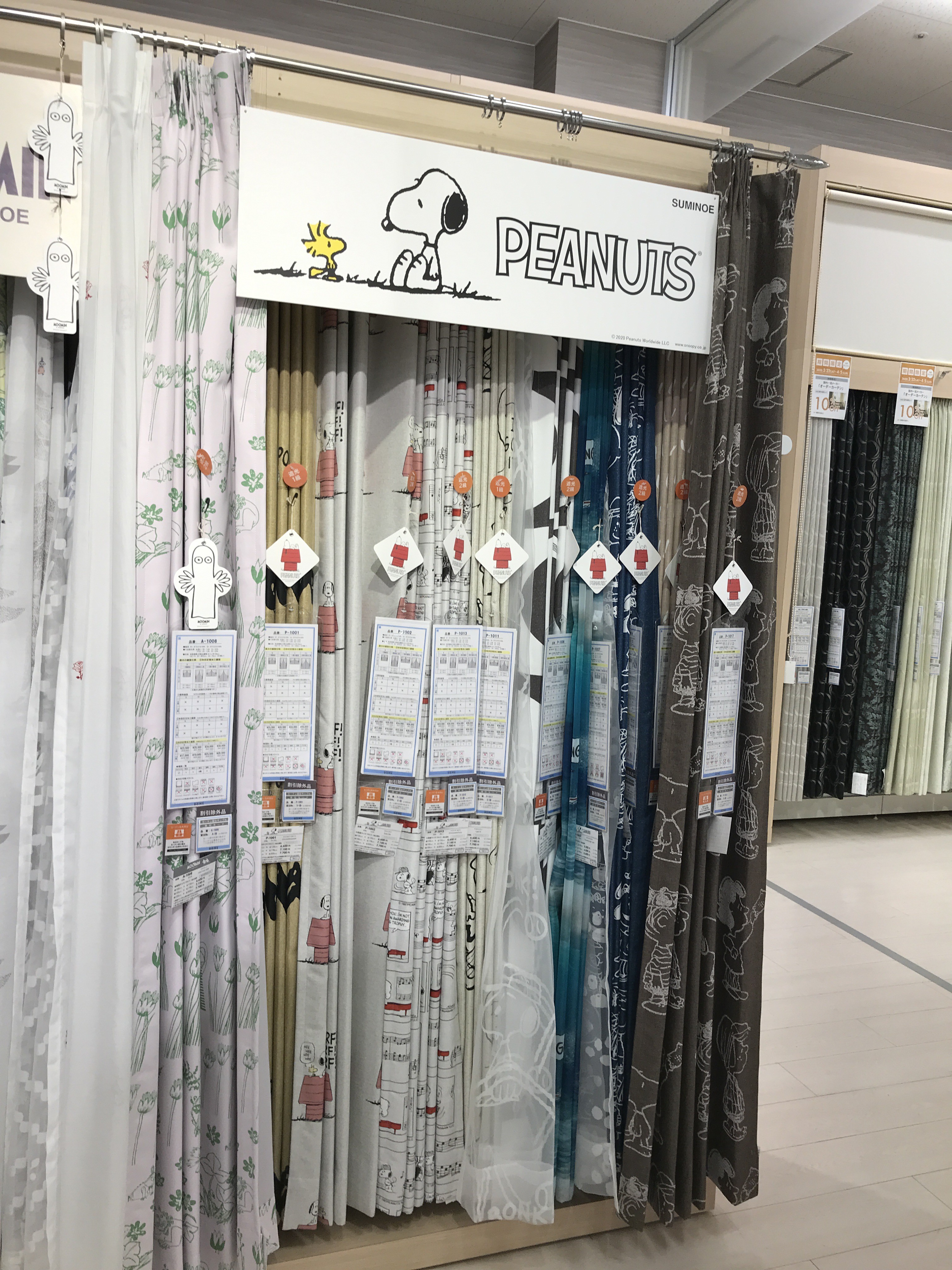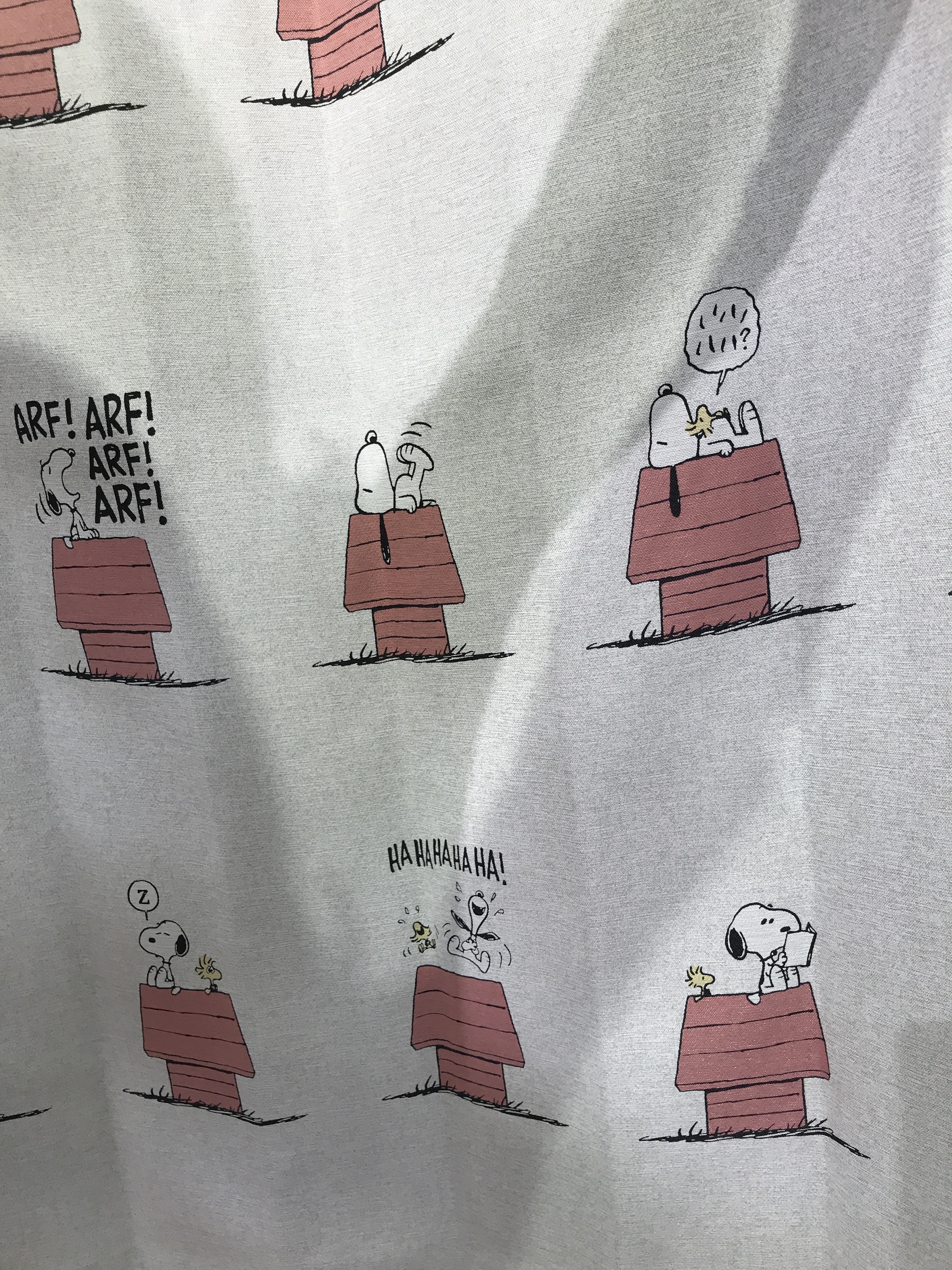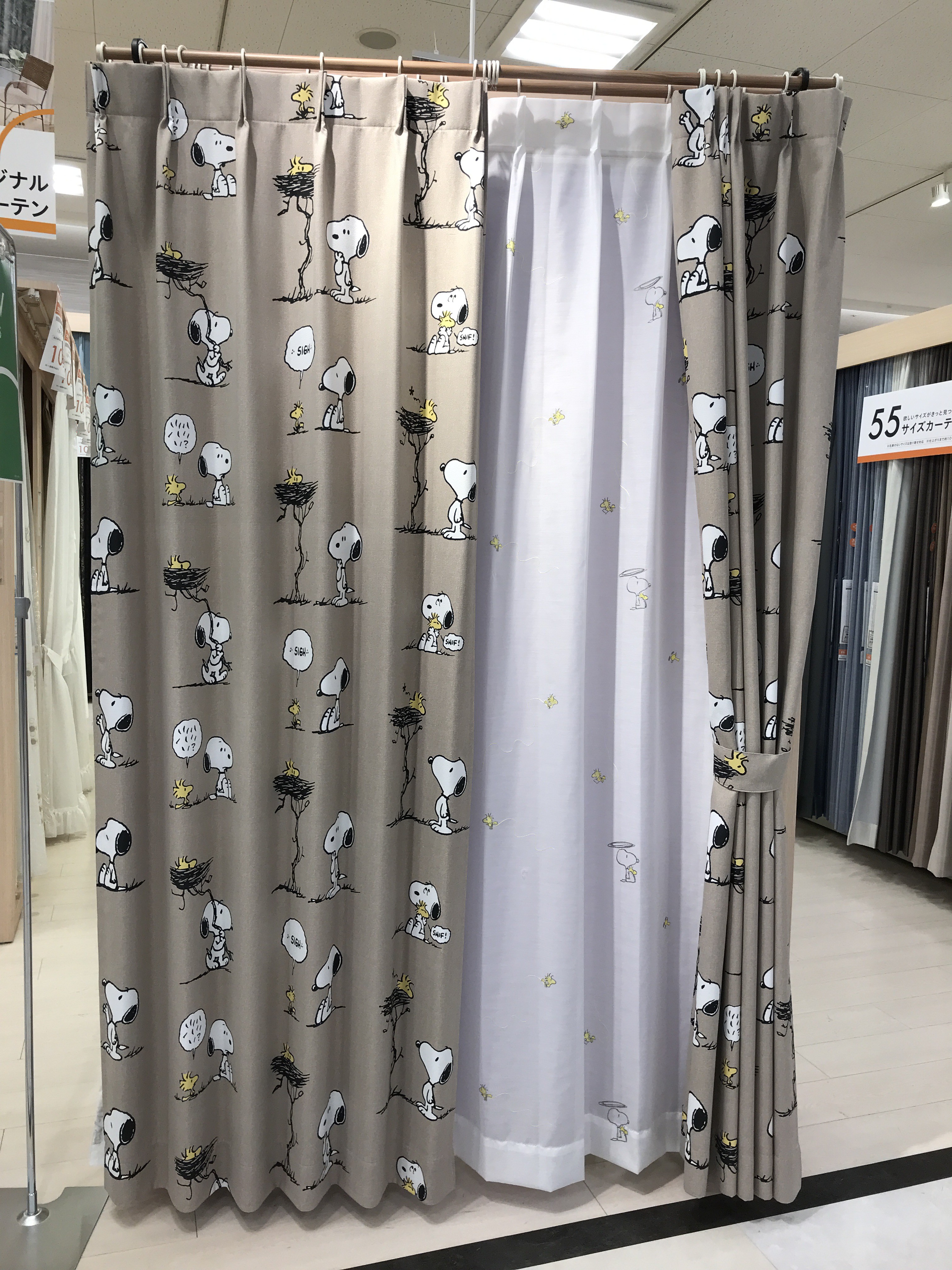スヌーピーの様々なポーズも楽しめる定番シーンの遮光カーテン