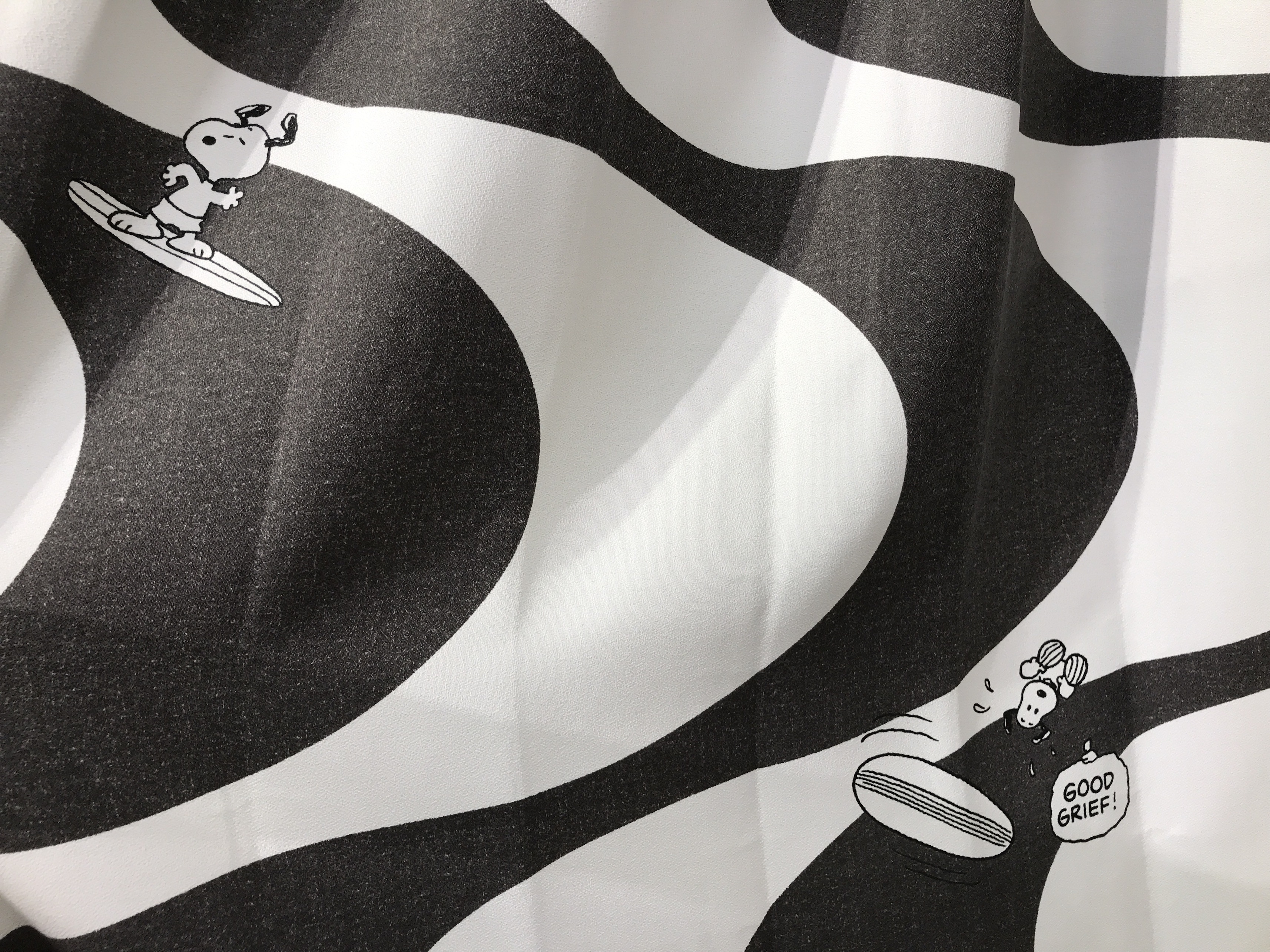 サーフィンを楽しむスヌーピーをイメージした遮光カーテン