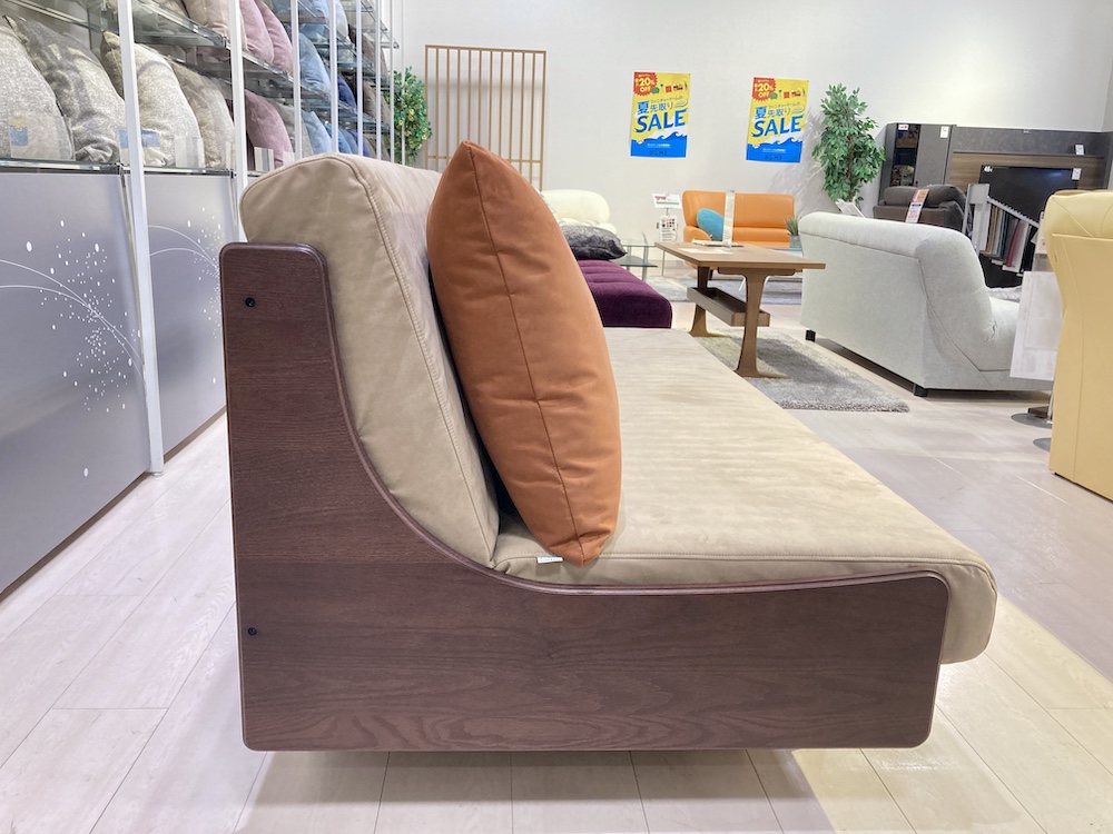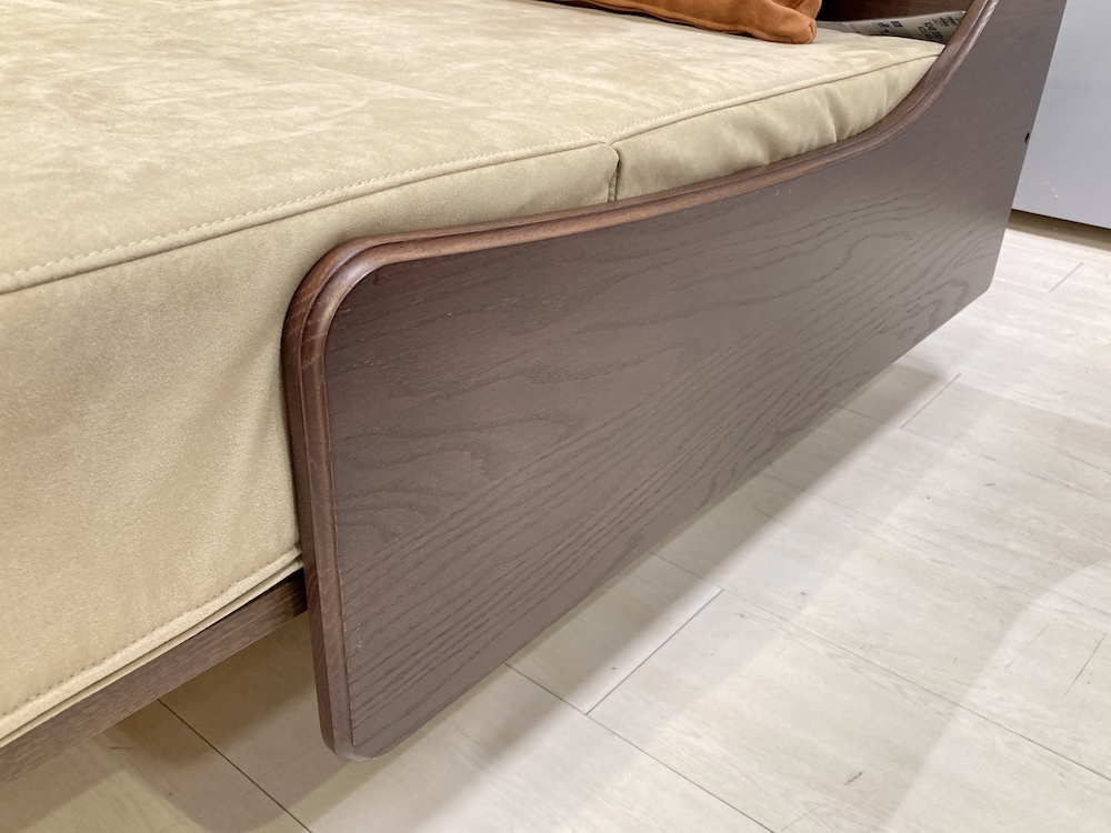 側板にはオーク無垢材を使用しているので、ソファとしての見た目もバッチリ。