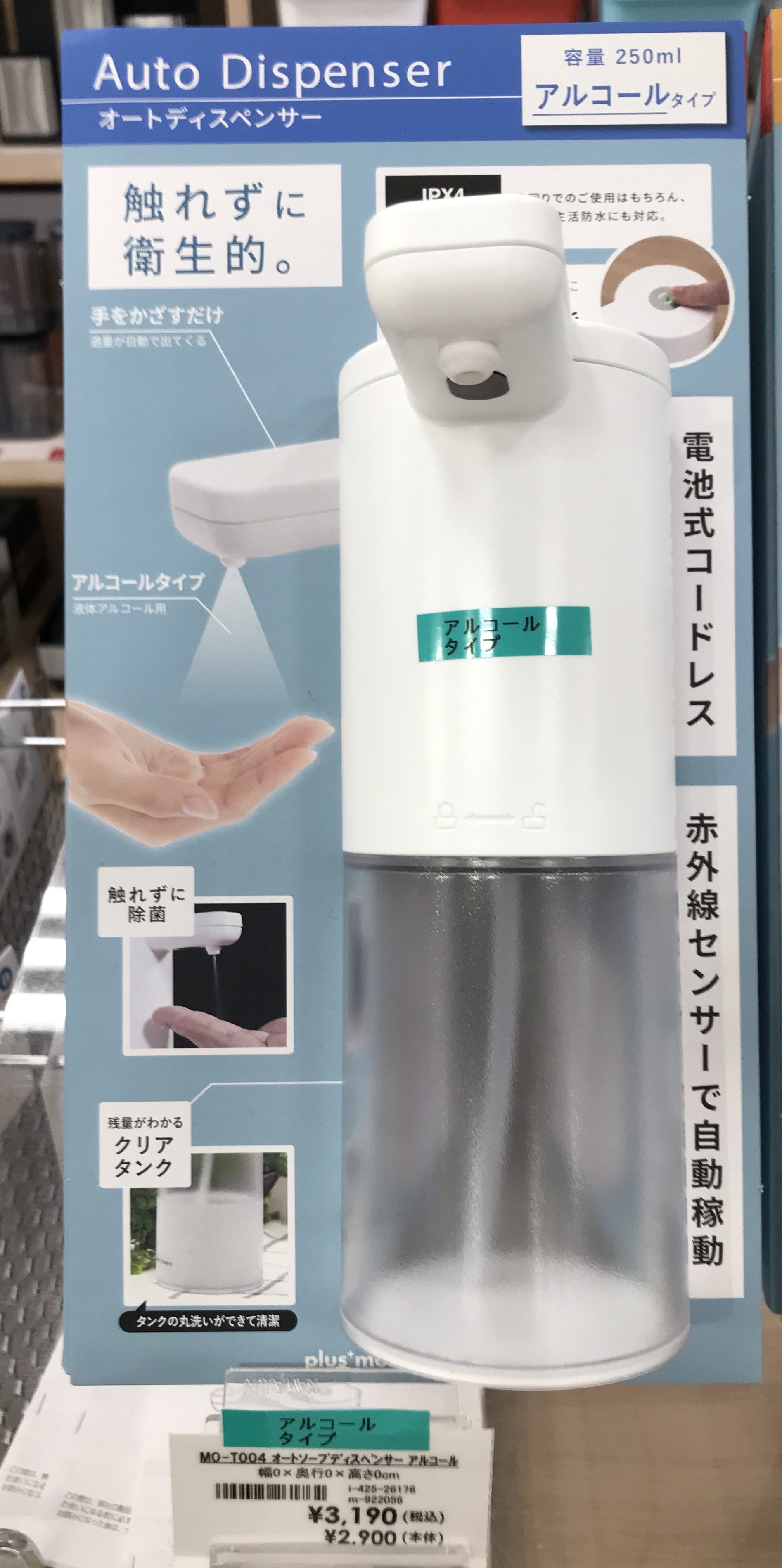 触れずに手をかざすだけでソープやアルコール消毒が使える