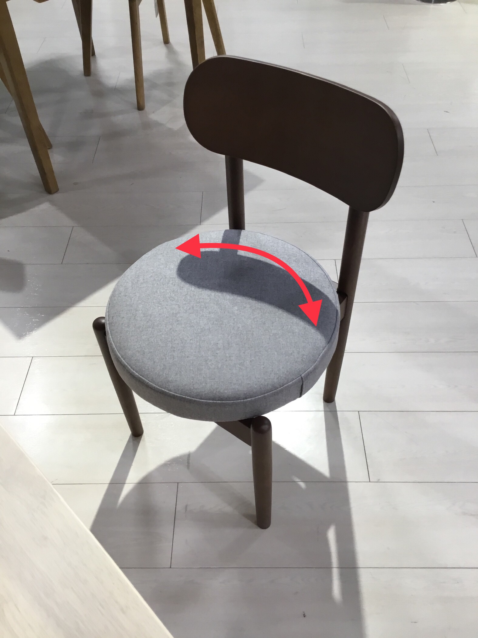 チェアはシート部分が回転するので、テーブルの出入りがしやすいです。