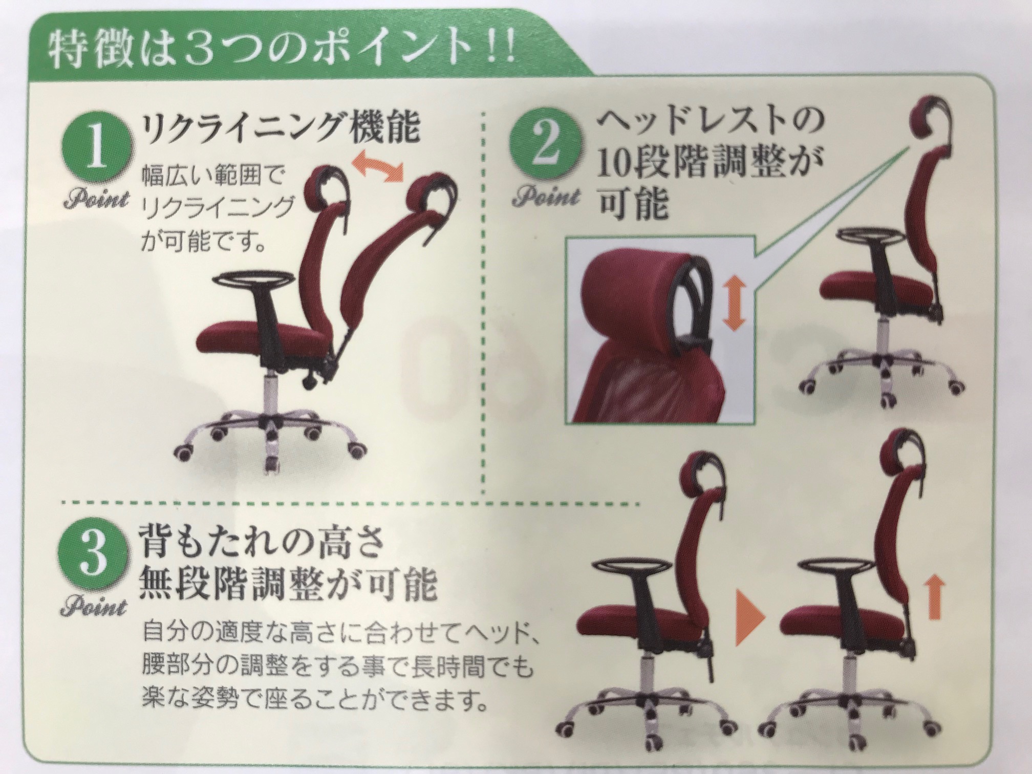 座面も広く背面メッシュは腰をしっかりサポートします。