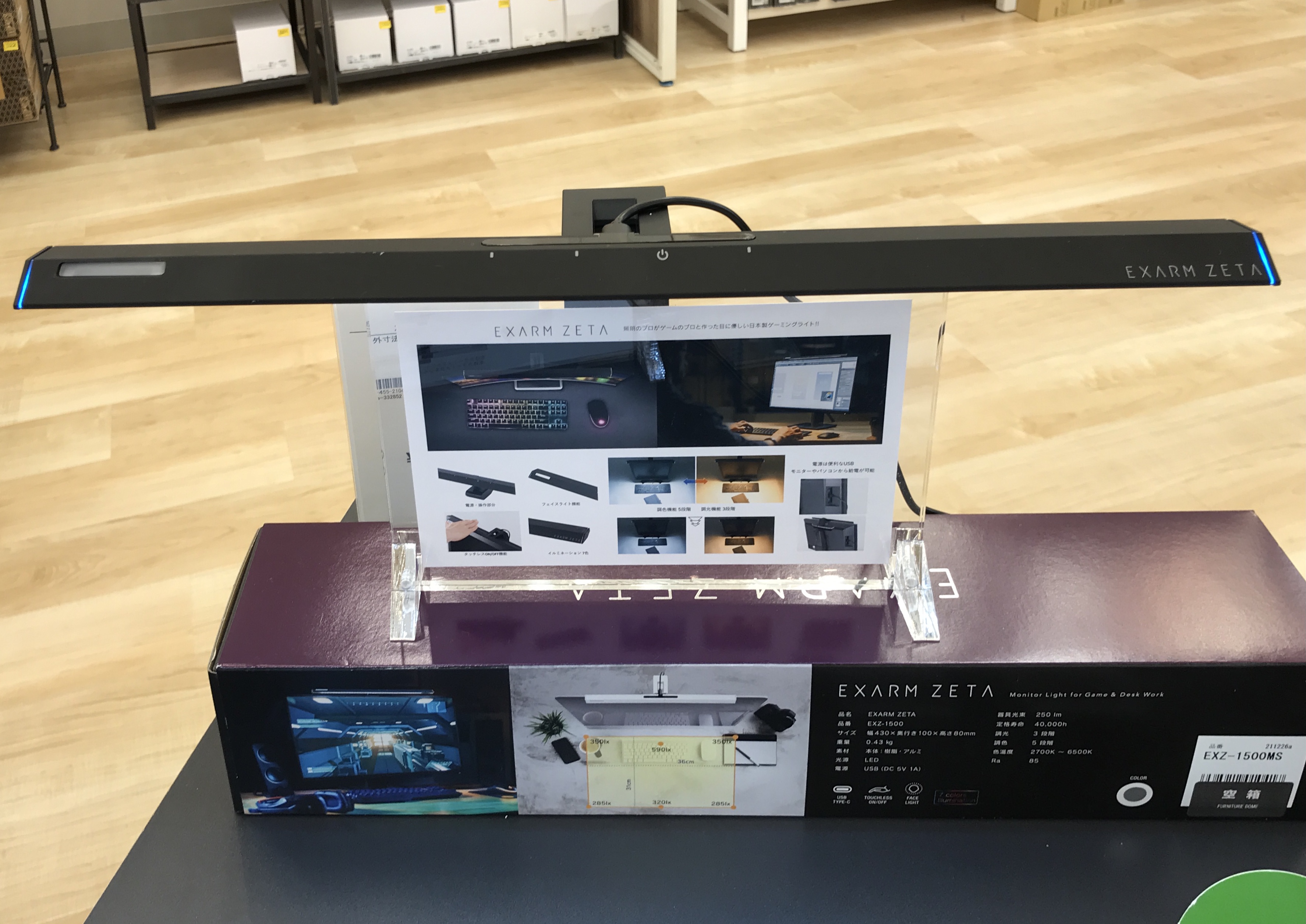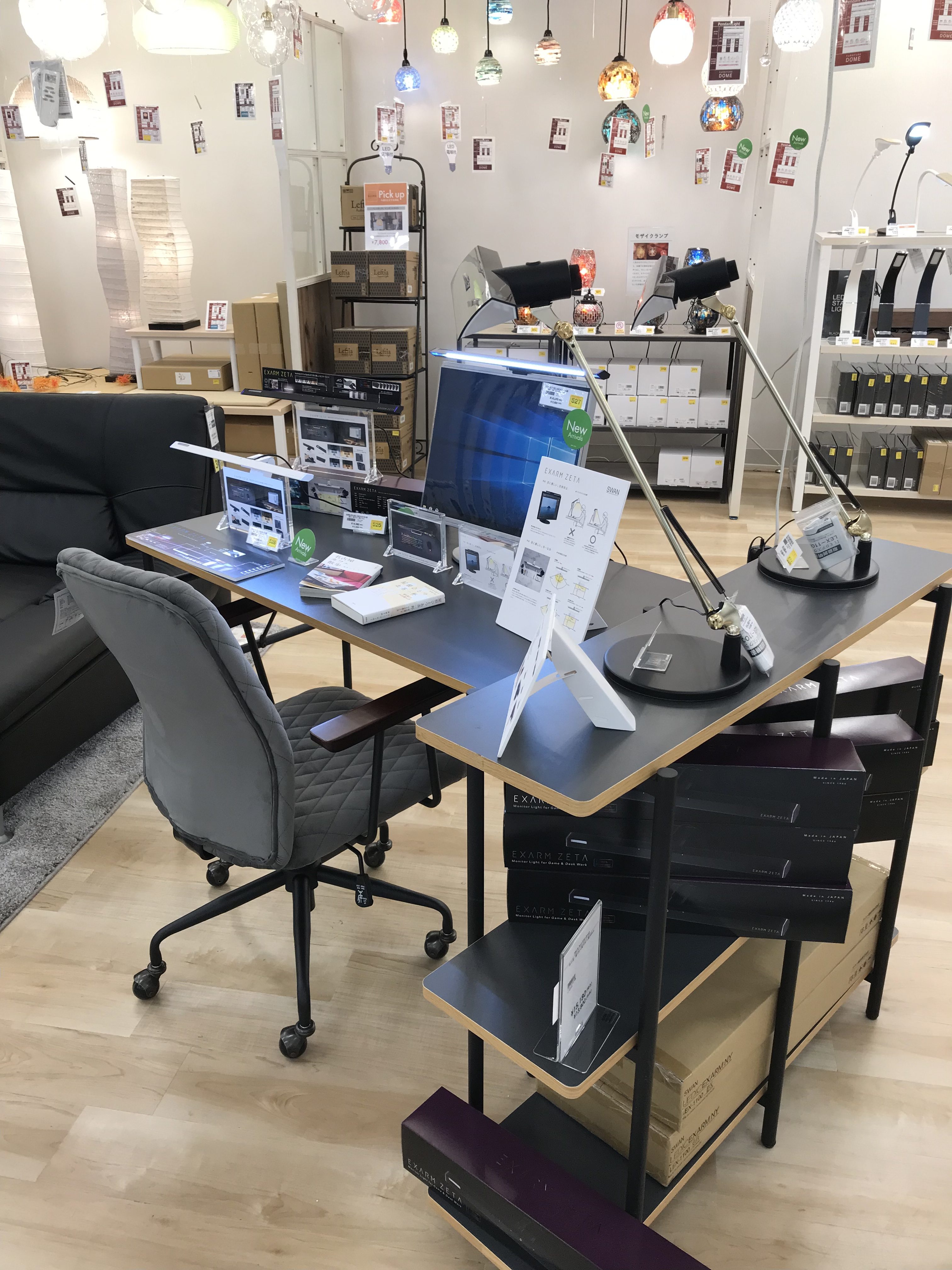 モニターへの映り込まない角度で設計された目に優しいライトです。