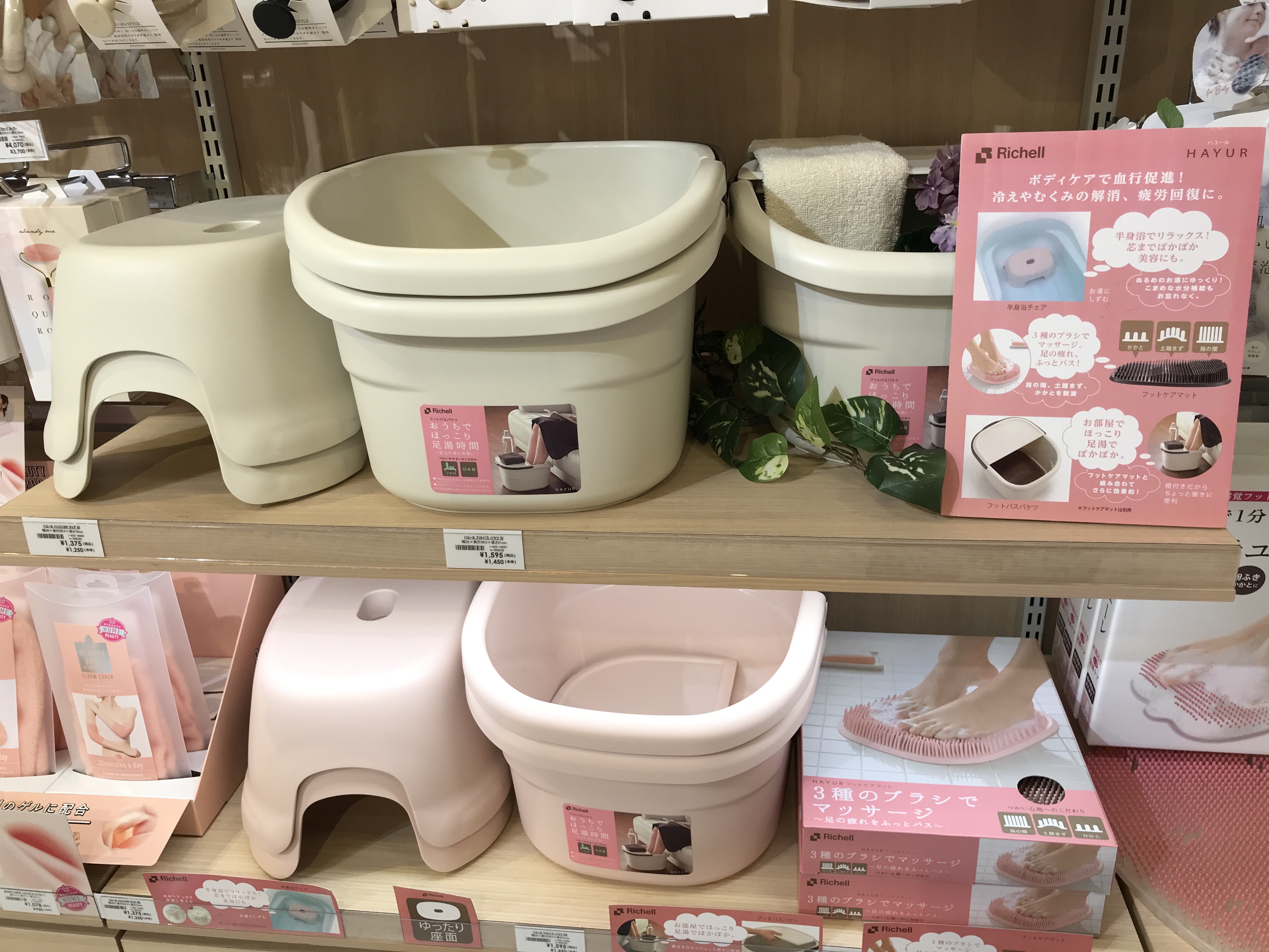 別売りのフットケアマットをバケツの中に入れて足の角質取りも
