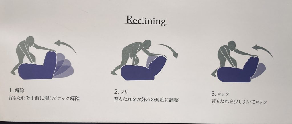リクライニングはシートを完全に倒すことなく調節ができる機能になってます(18段階)