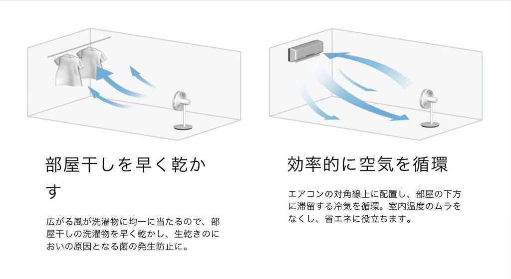 部屋中の空気を素早く動かし循環させることができ
