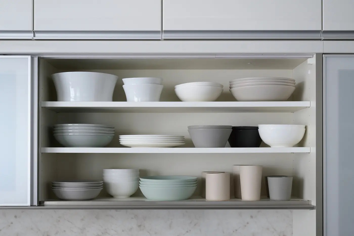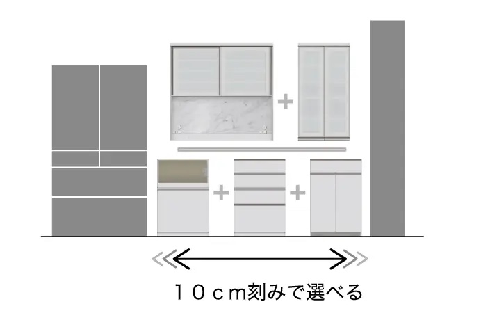 選べるアイテムが豊富で、組み合わせることで、理想の形がつくれる食器棚です。