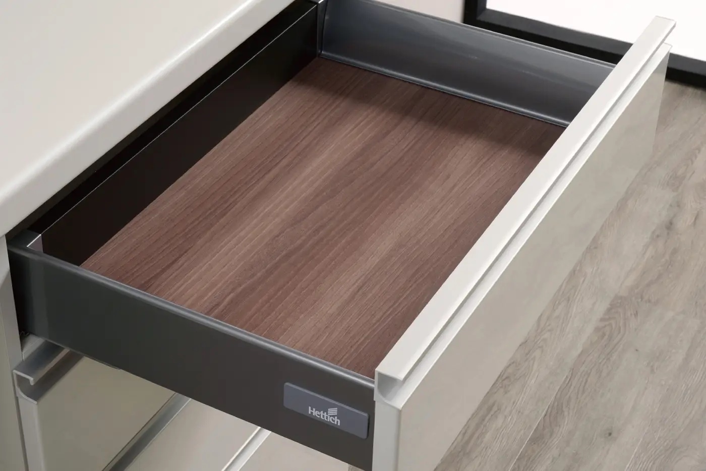 引き出し底部は、高級感あるグレイッシュナット色を使用しています。