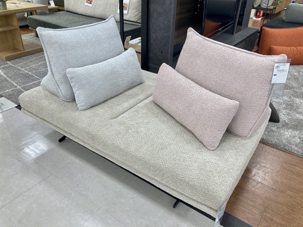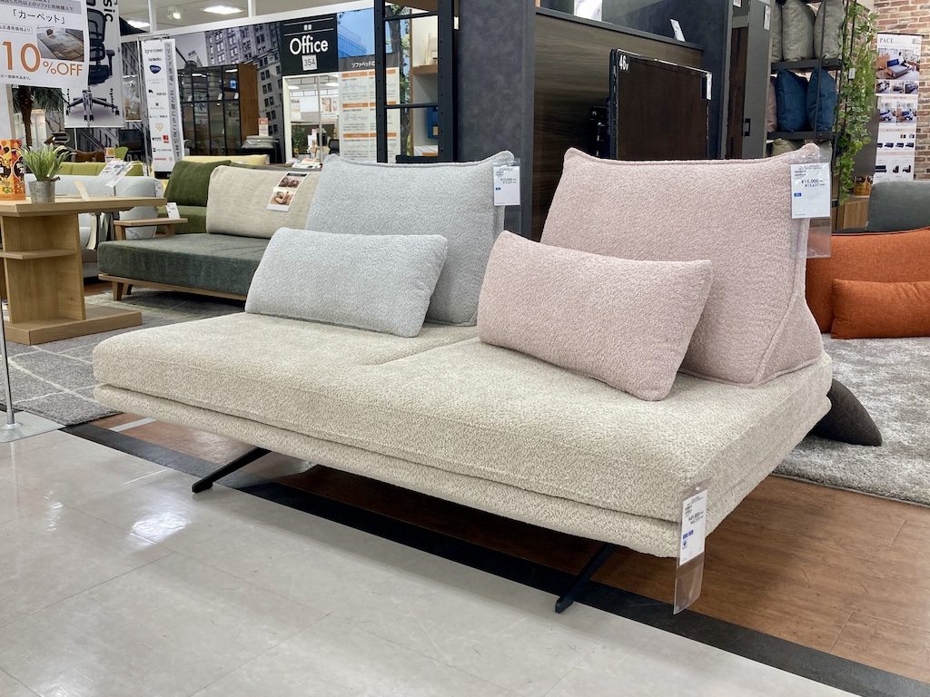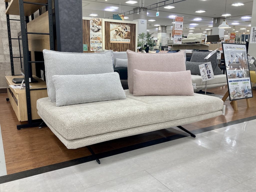 リビング売場から、新しく入荷したアイランド型ソファ「ブークレー」をご紹介いたします。