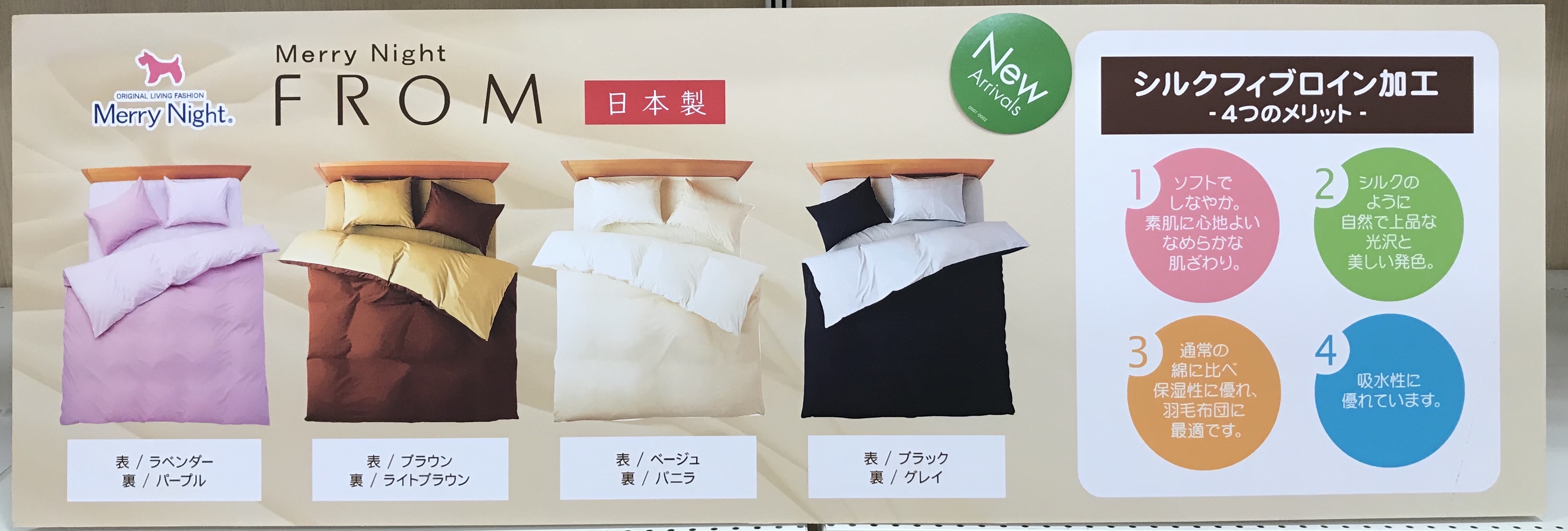天然シルク成分配合で、なめらかな肌触りの日本製です。