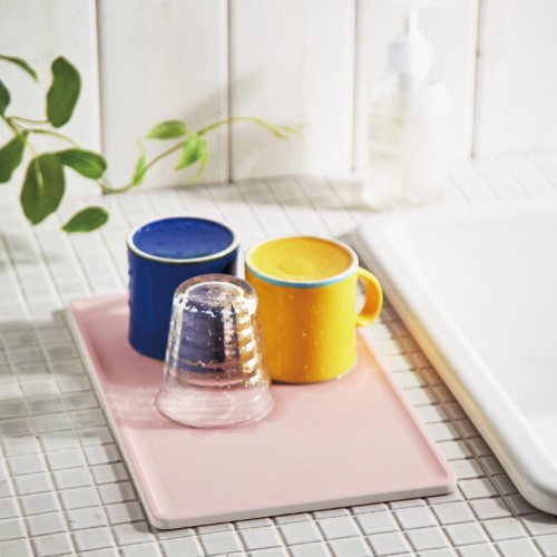 珪藻土の5倍の吸水性を持ち、洗った食器の水滴をすばやく吸水!