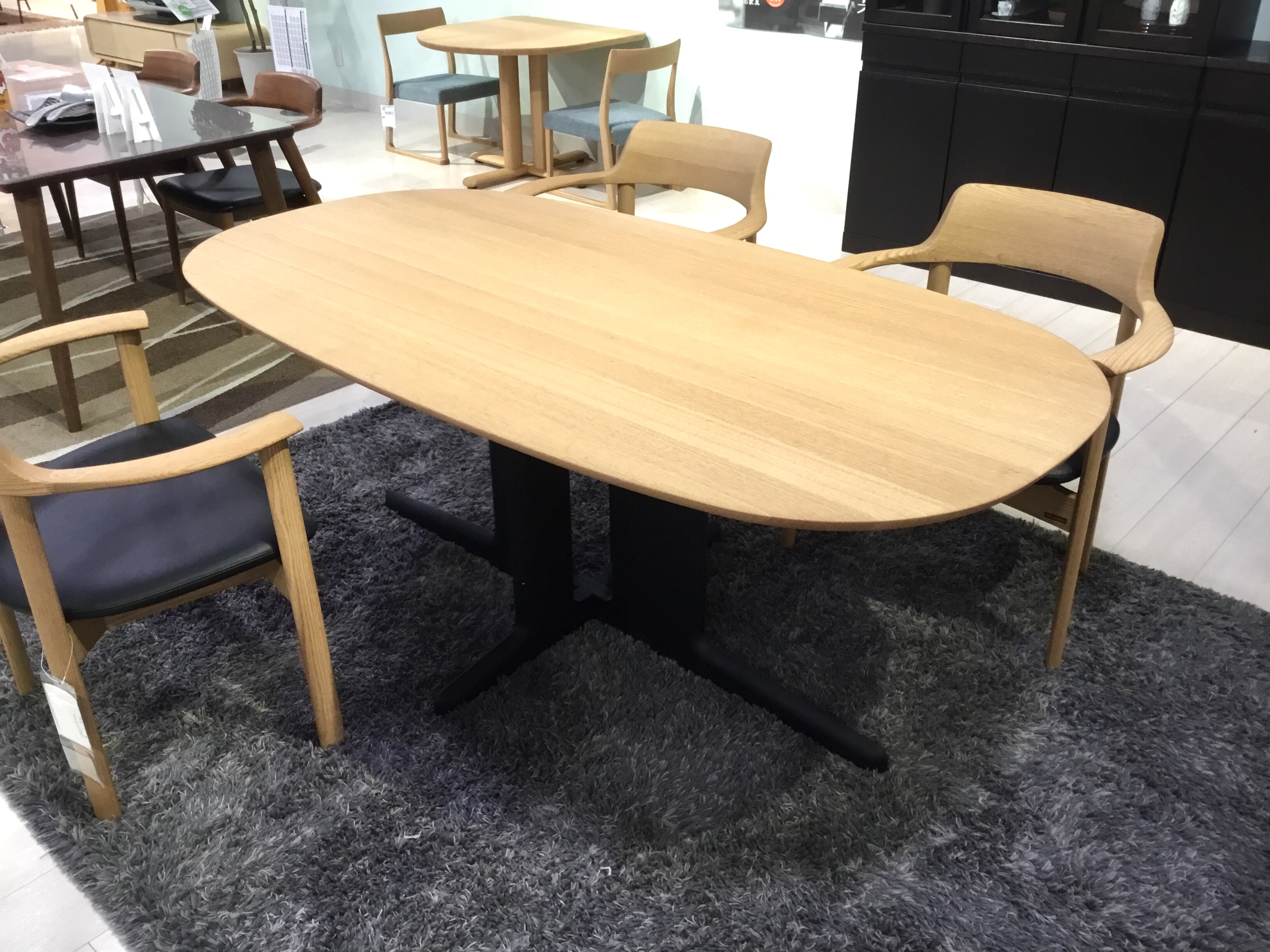 楕円形の迫力あるダイニングセット。