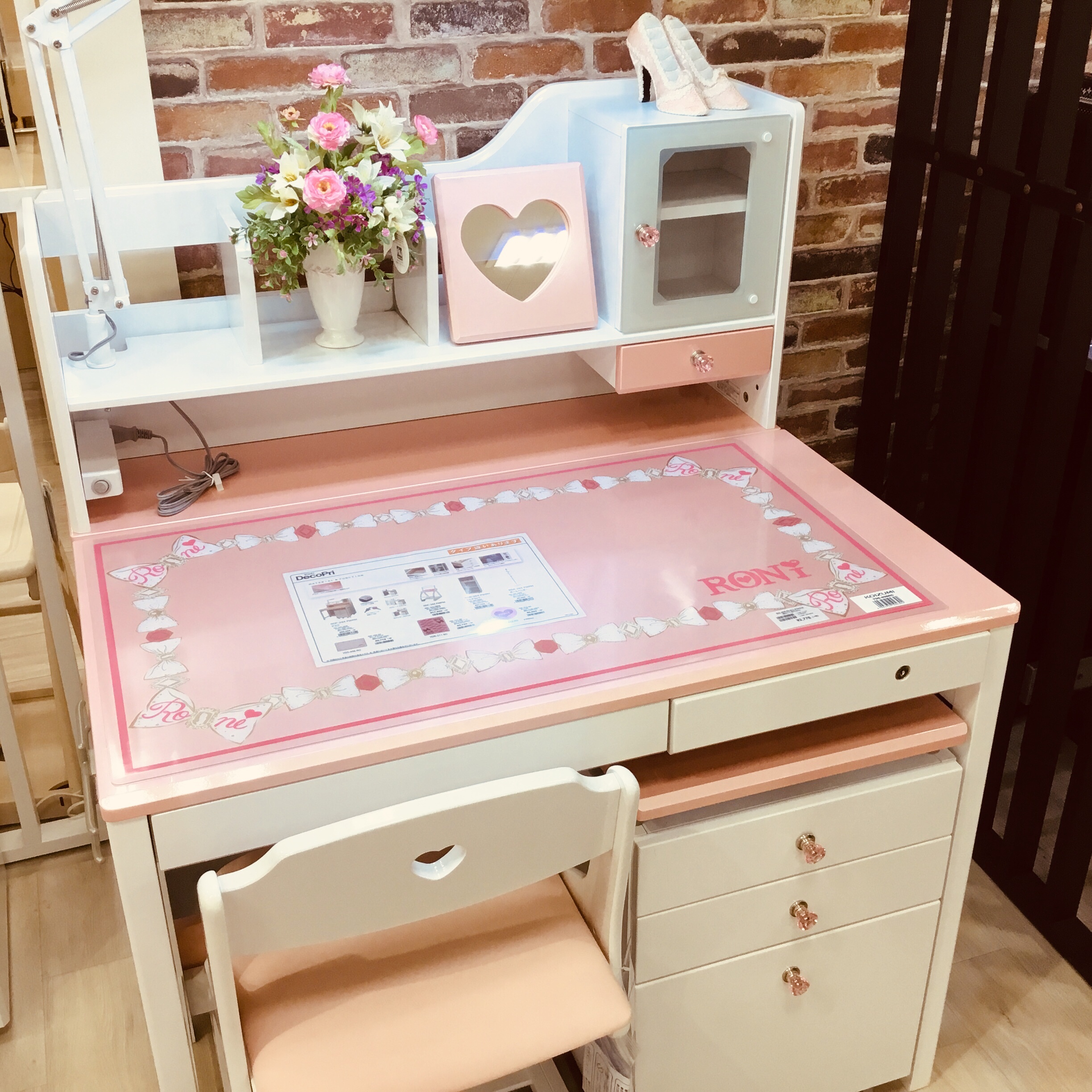 リボンの縁取りが可愛いデスクマットは「RONI」ブランドとコラボレーションした限定品で、在庫限りとなっています!!