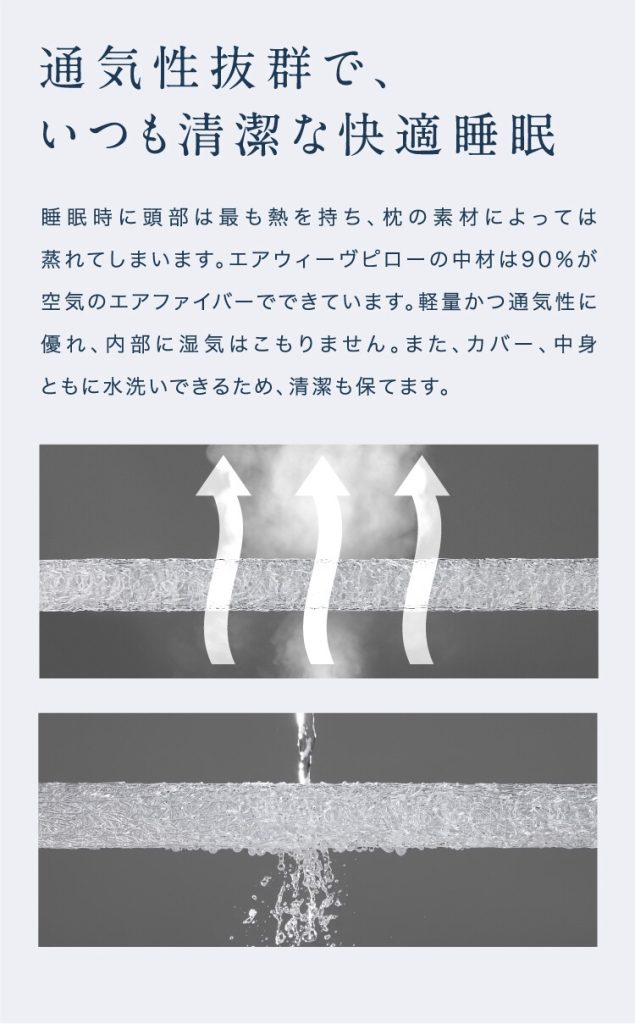 優れた復元性と通気性で、蒸れにくく、眠りを妨げない快眠枕です。