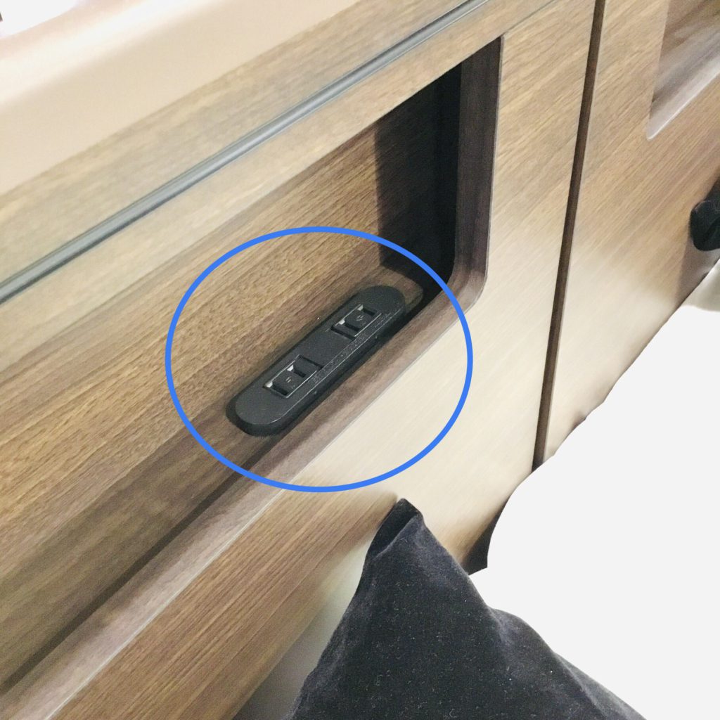 最低限枕元に必要なメガネや携帯電話、本などが置ける寸法になっており、2口コンセントが付いています。