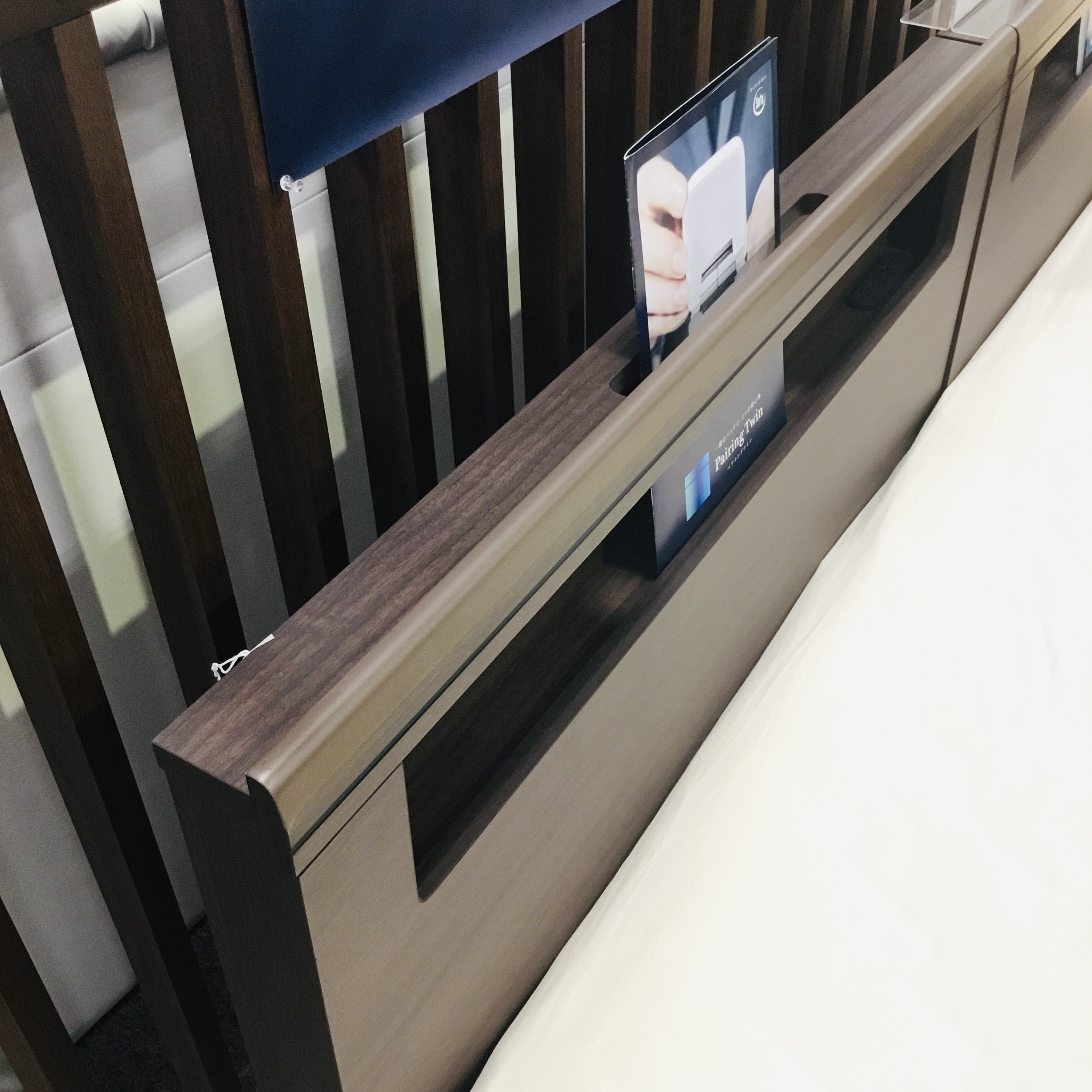 ヘッドボードはスッキリとした薄型のキャビネットで、物は置きたいけどあまり場所を取りたくない方にオススメです!⬇︎