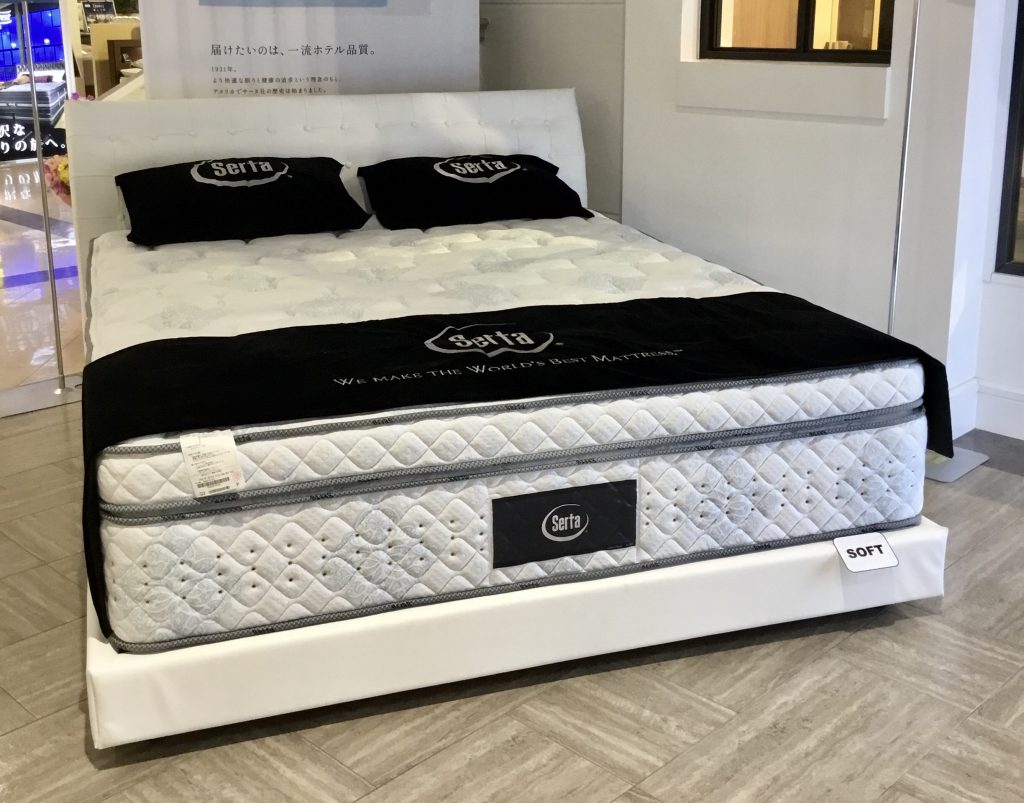 サータのプレミアムシリーズの最新モデルのマットレスを搭載したワイドダブル(Q1)ベッド。