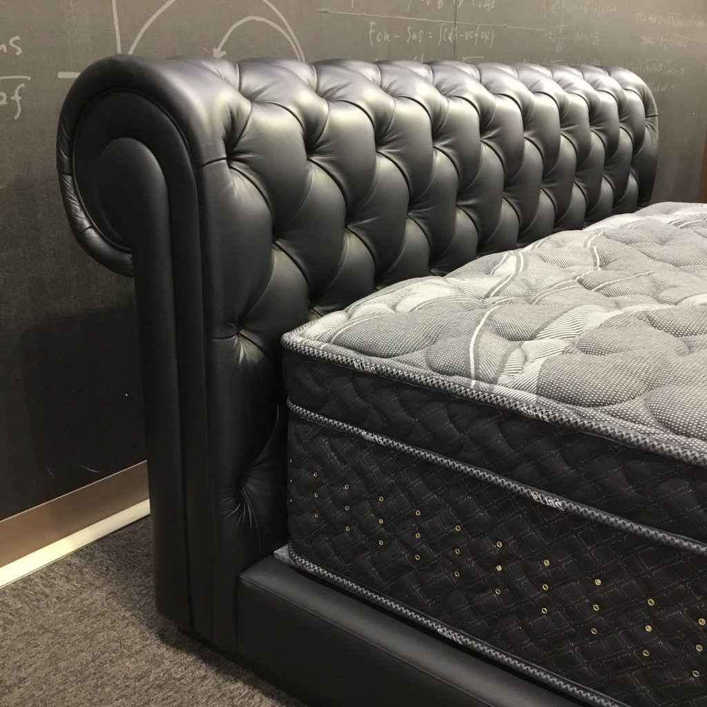 フレームは牛本革張りの曲線的で重厚なヘッドボードが格調高いデザイン。