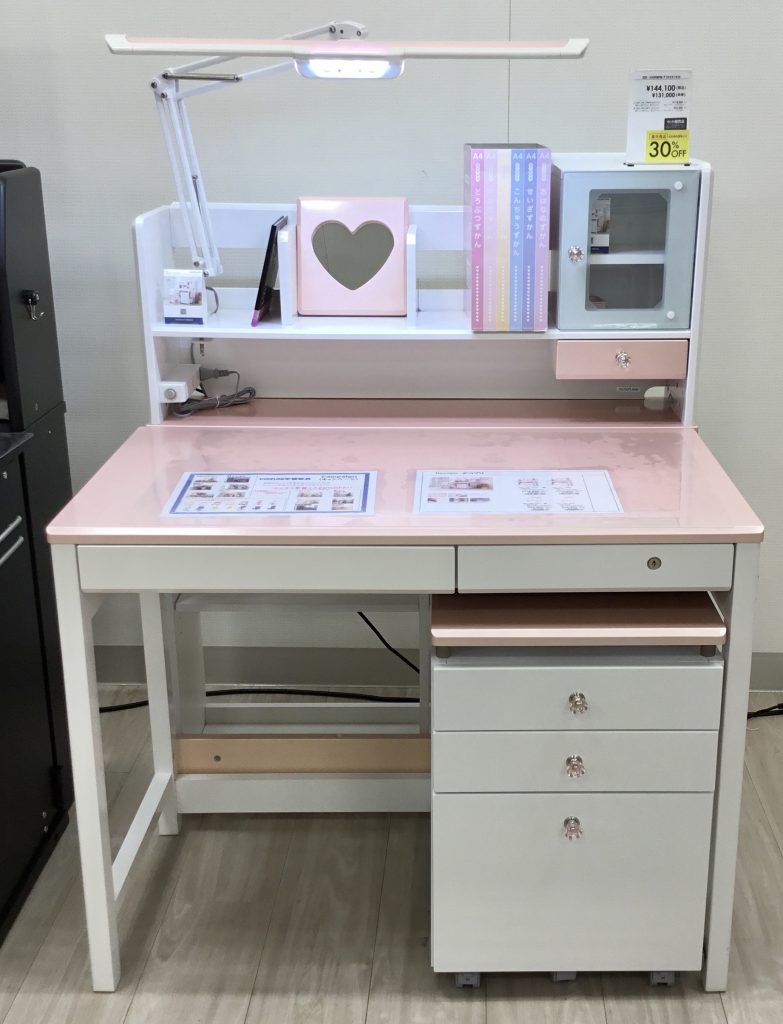 ピンクとキラキラの取手が可愛らしい「デコプリ」デスク。