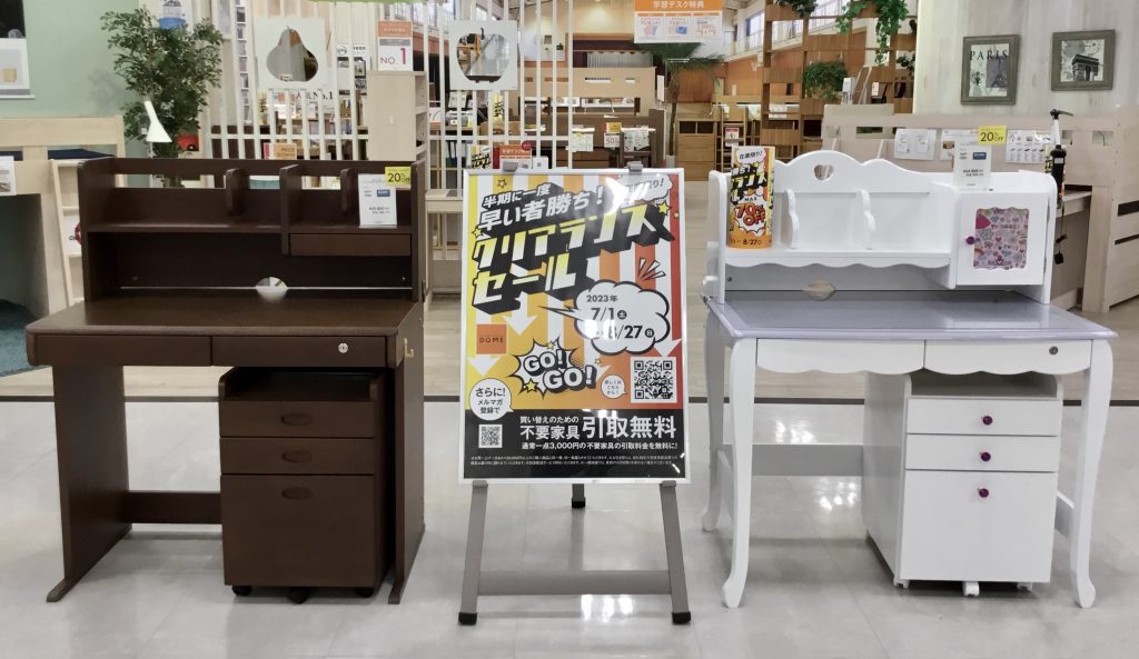 1階にある家具売場より、お値打ちな展示品限りの商品をご紹介します。