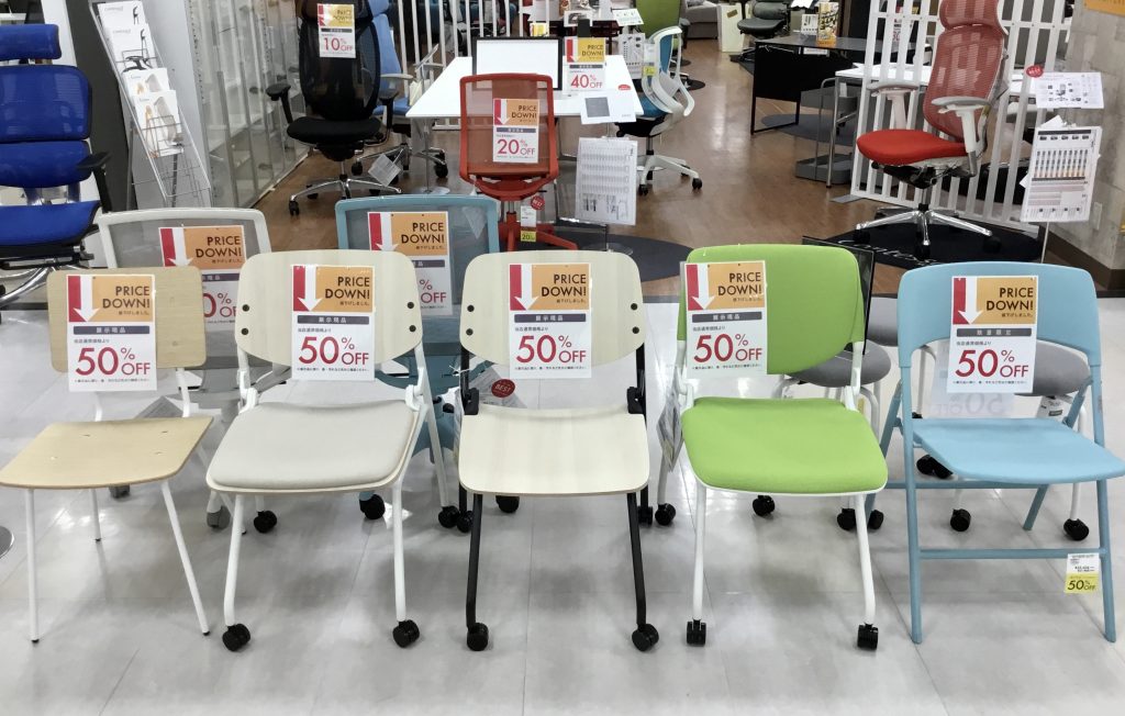ずらっと並んだチェア、展示品限り 50%OFF!