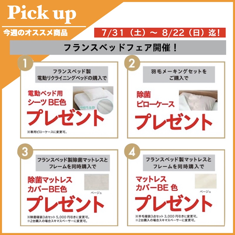そして、並行して開催しておりました「フランスベッドフェア」も8月22日(日)で終了となります。