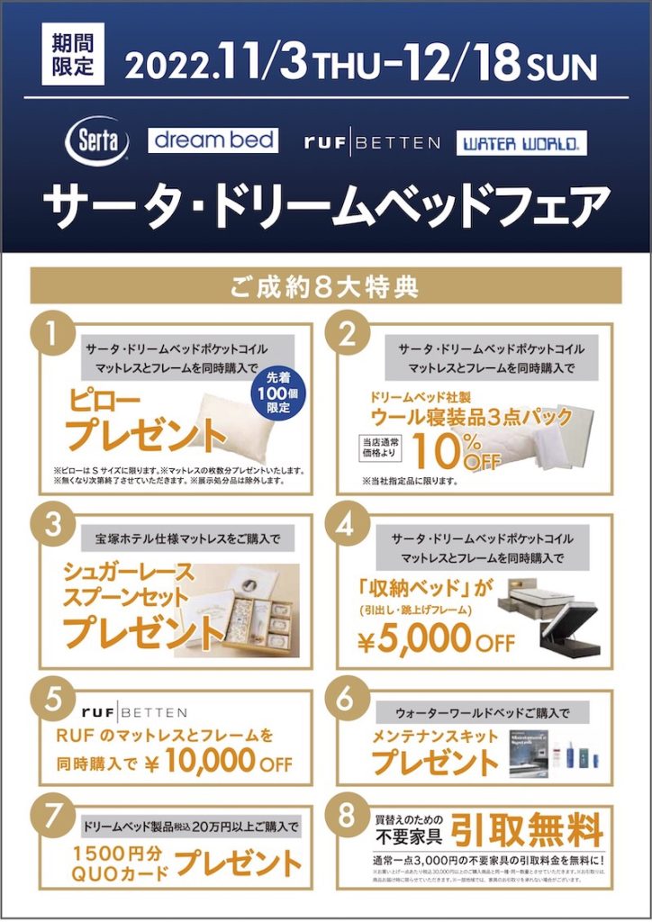 11月3日(木)より、『サータ・ドリームベッドフェア』が始まりました!