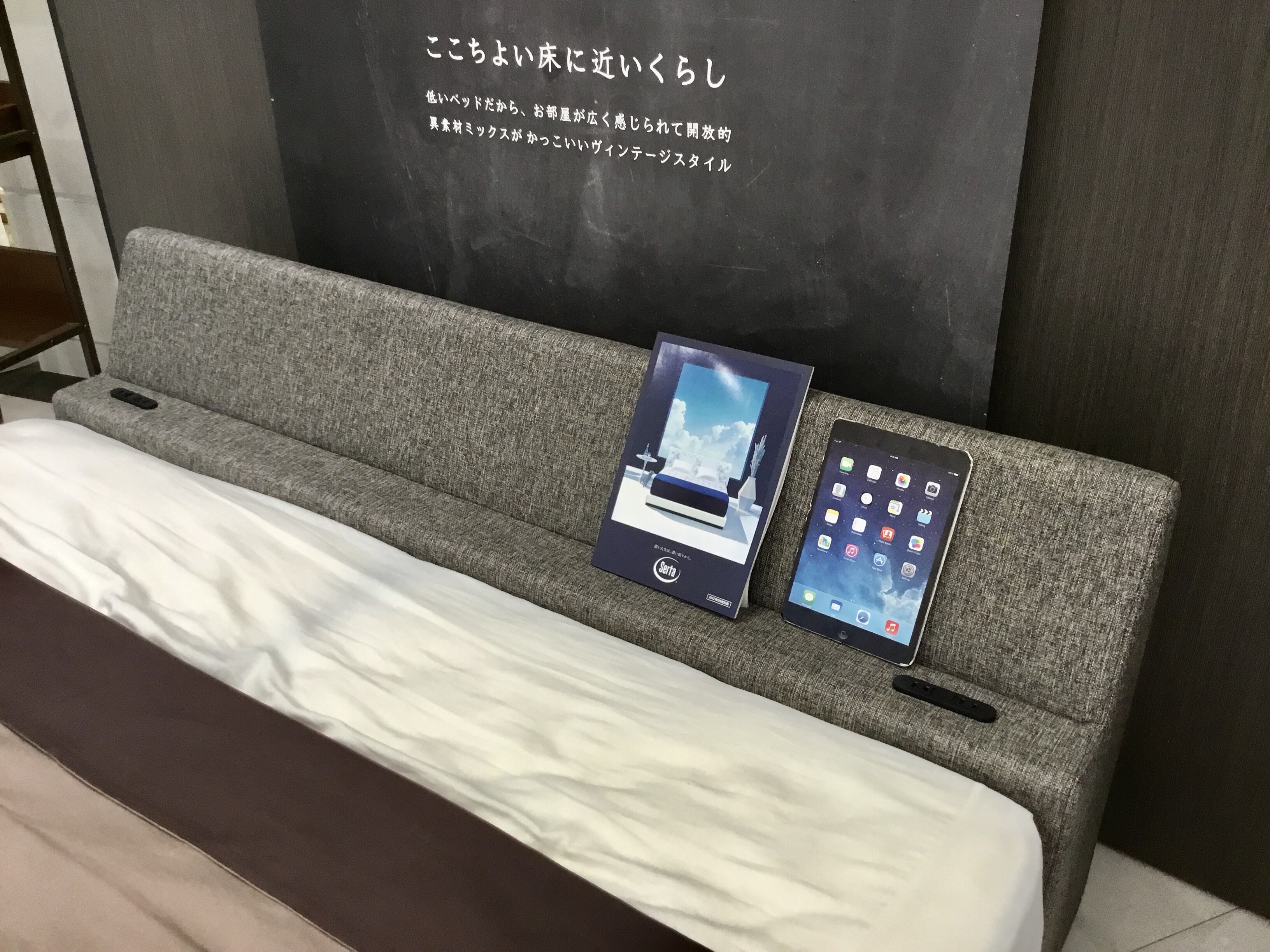 ⬇︎布張りでありながら、ヘッドボードにものが置けてコンセント付の仕様になっています。