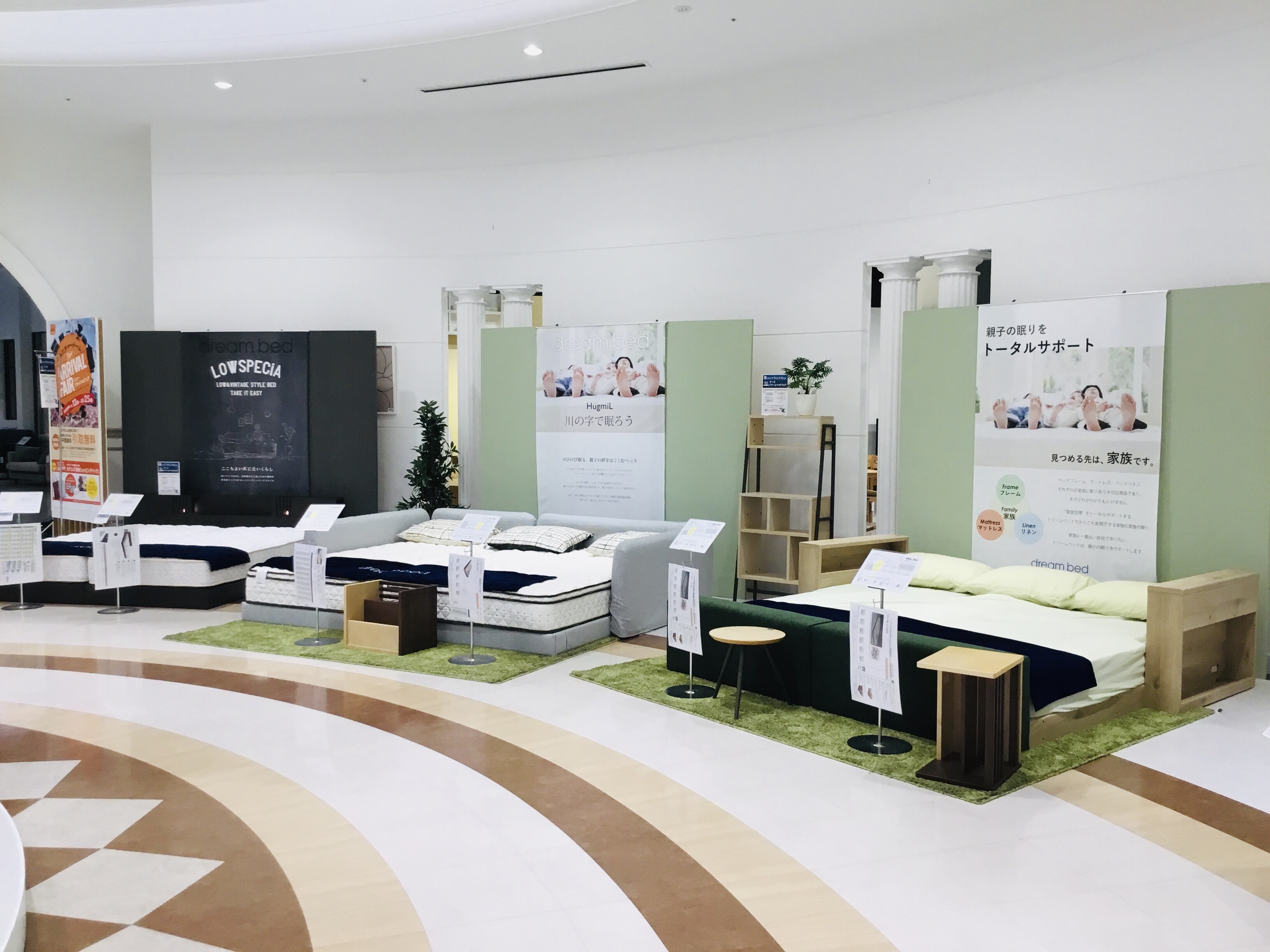 ベッド売場以外にもエスカレーターを上がってすぐのスペースで拡大して、普段よりも展示商品の数を増やしてお待ちしております!