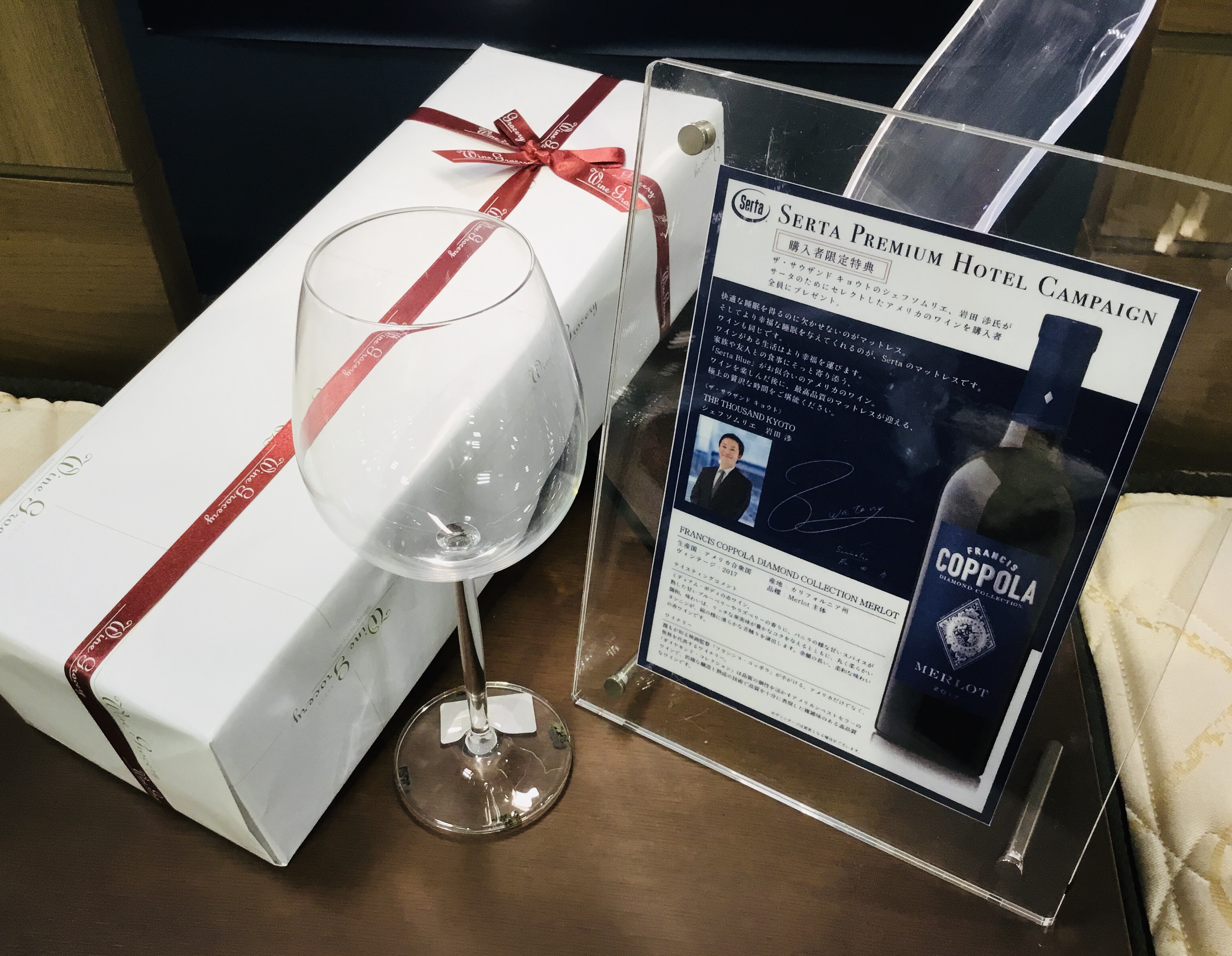 ご購入者限定特典で、ザ・サウザンド キョウトのシェフソムリエ 岩田渉氏がセレクトしたアメリカのワインをプレゼント!!