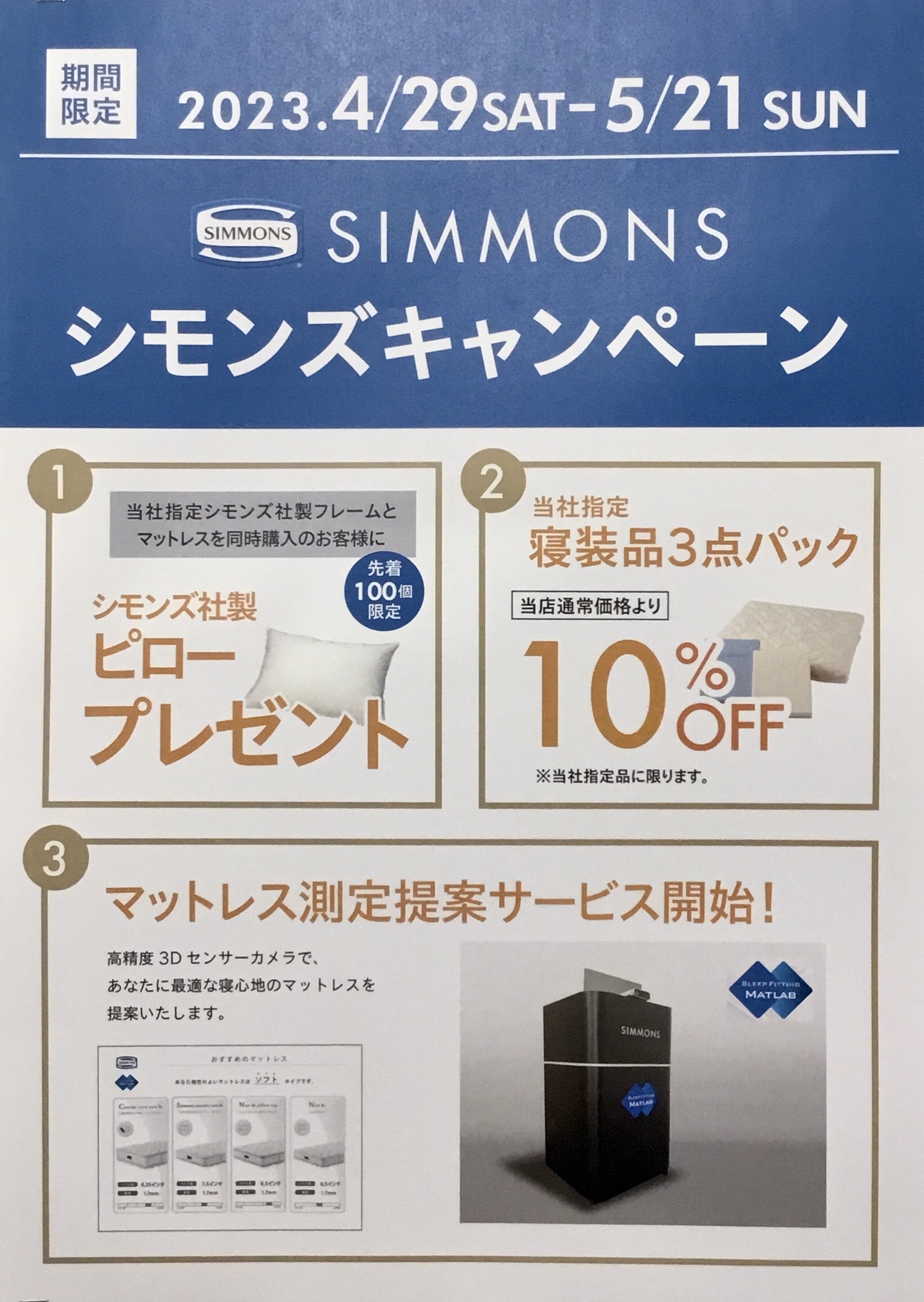 4月29日(土)から始まる『シモンズキャンペーン』のご案内です!