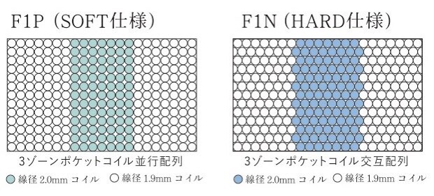 異なる線径と配列によって硬さの違いをだした両面仕様のマットレスで、ソフトとハードよりお選び頂けます。