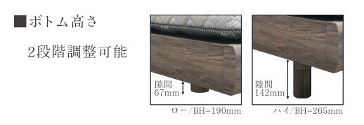 ボトムのデザインは脚タイプのみ。継ぎ脚タイプになっているので高さが2段階調整が可能です。(展示はハイタイプの設定です)