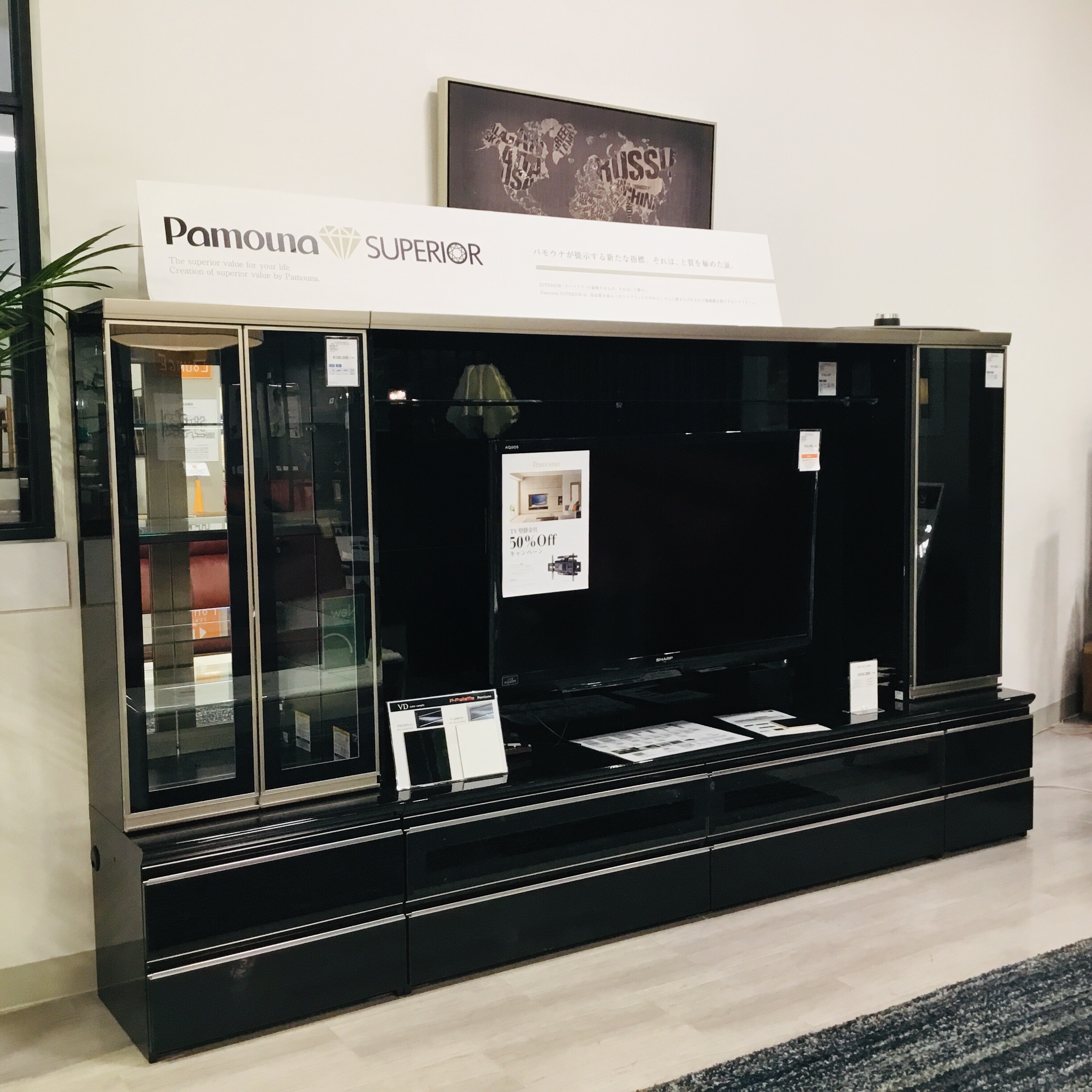 テレビボードは、パモウナ製のテレビボードとTV壁掛金具をセットで同時にご購入いただいた方を対象に、