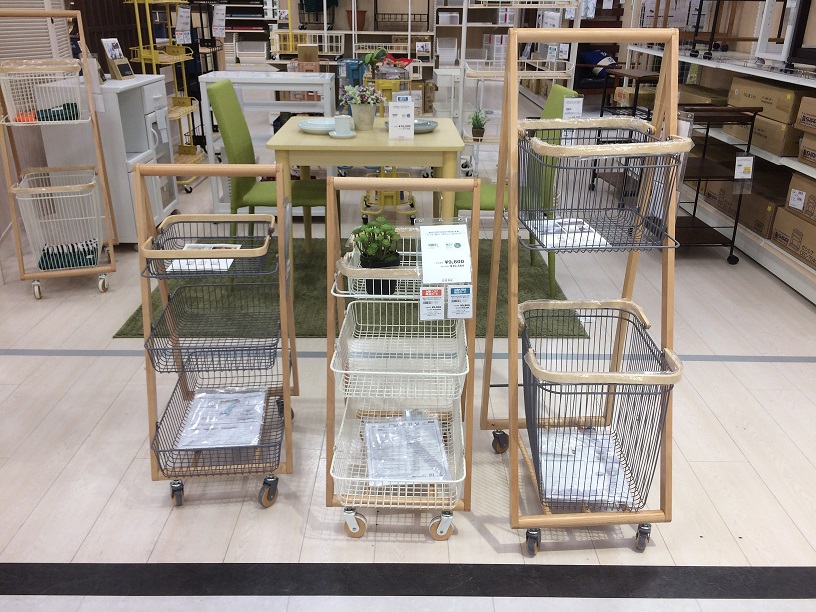 MASH(マッシュ)シリーズより新商品ご紹介。木製フレームとスチールバスケットで、北欧イメージのバスケットワゴン。