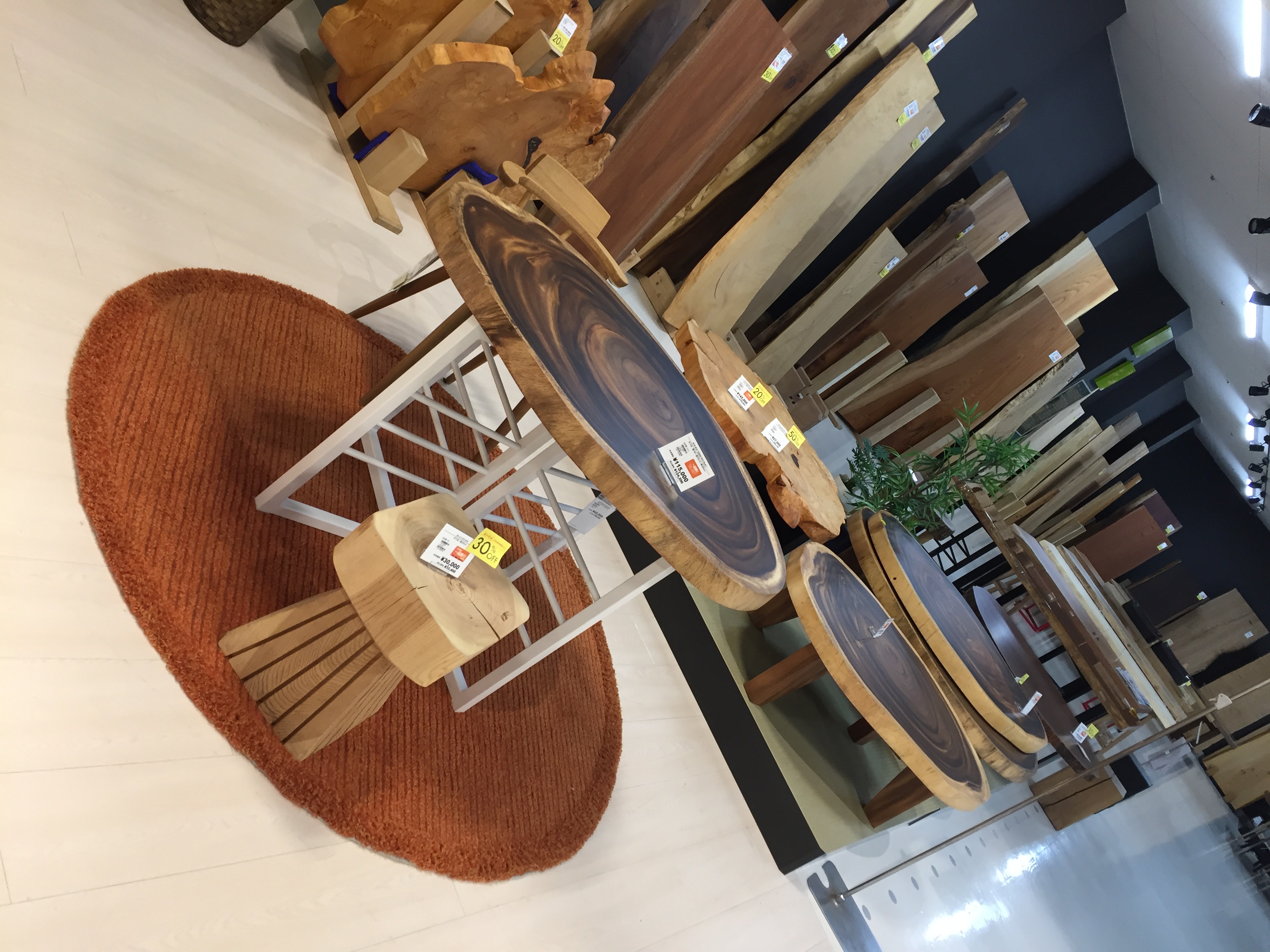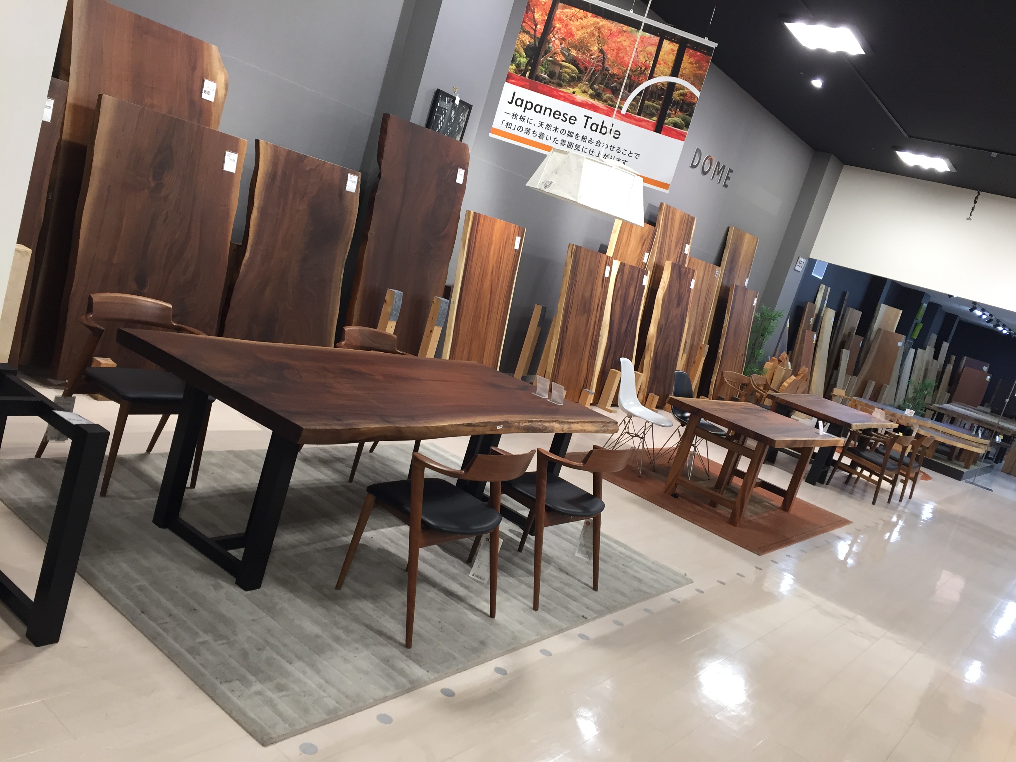 ファニチャードーム本店では、さまざまな木種やサイズ、塗装の一枚板を数多く取り揃えております。
