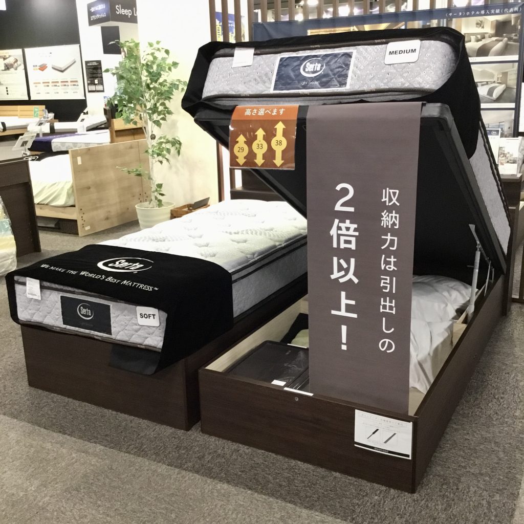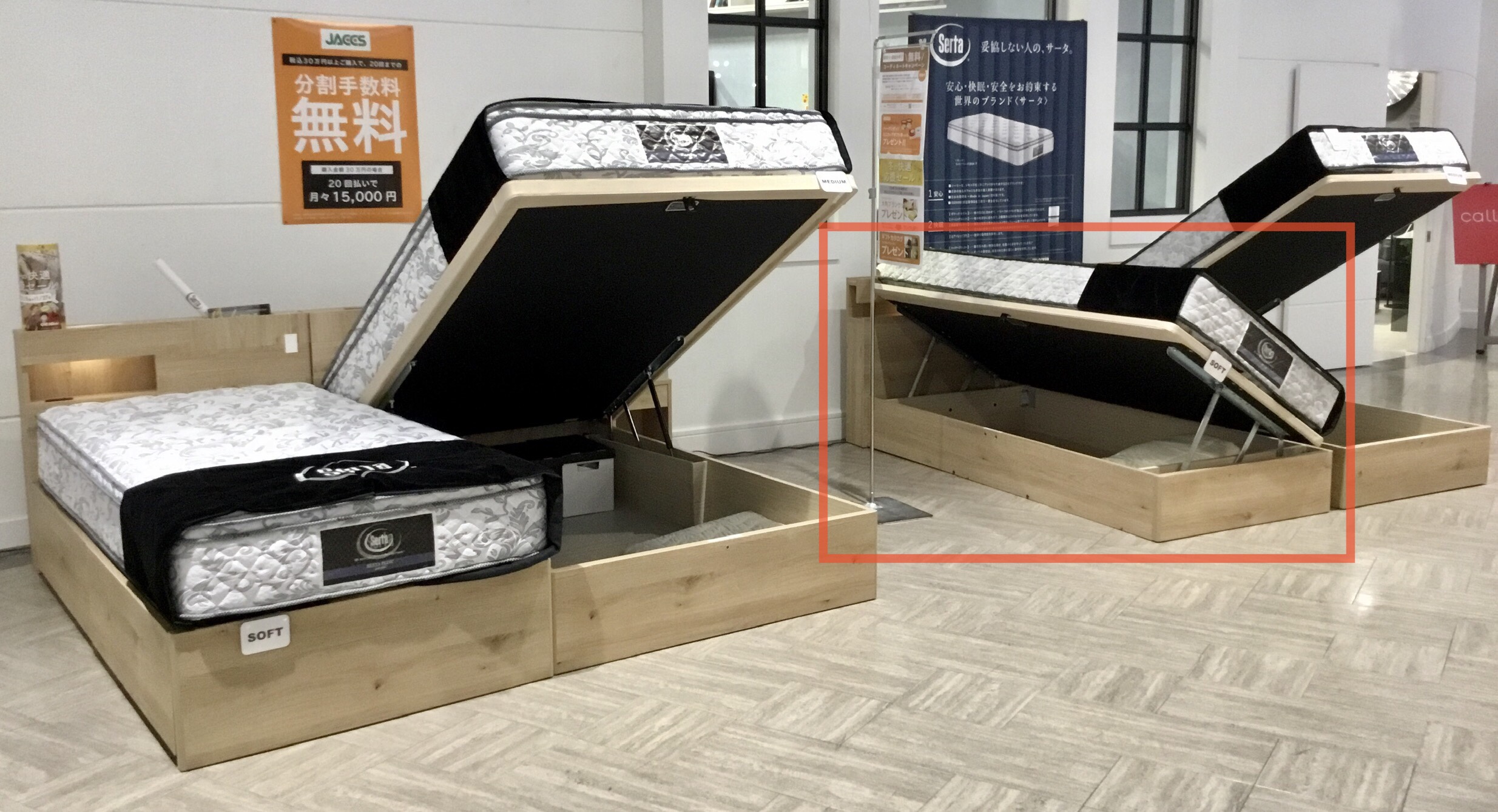 「サータ・ドリームベッドフェア」特典④を利用して、今なら跳ね上げ収納ベッドフレームとポケットコイルマットレスを同時購入でお得にお買い求め頂けます。