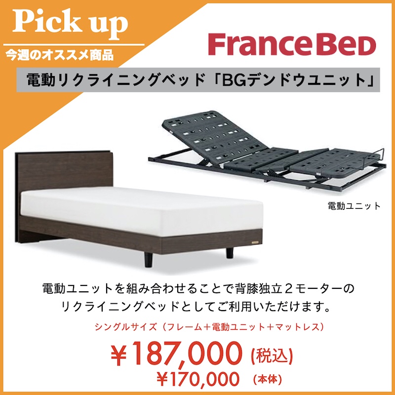 クリアランスセール期間中、当社指定の電動リクライニングベッドが5%OFFになります。